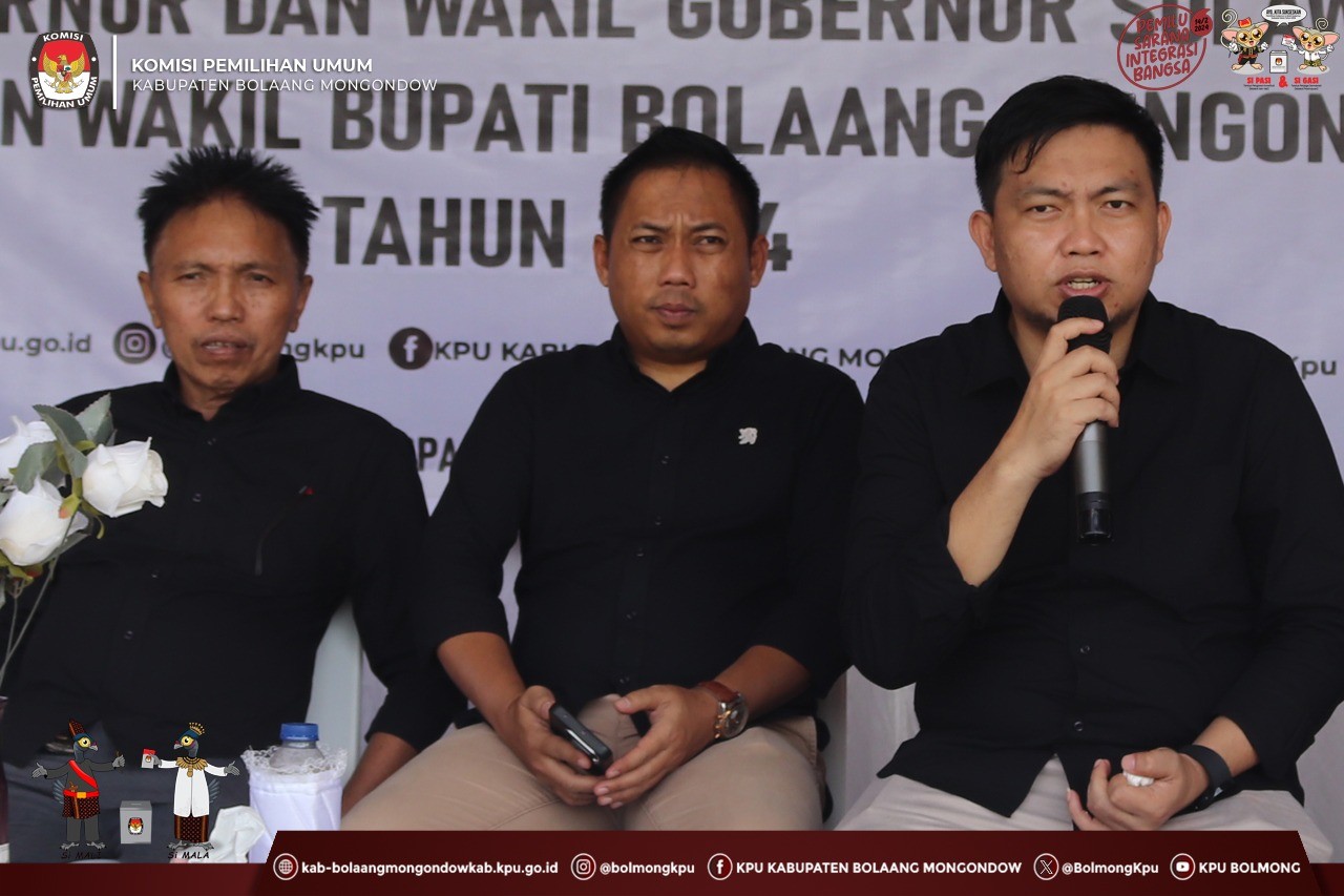 Pada kesempatan yang sama, Asisten I Bidang Pemerintahan dan Kesra Pemerintah Kabupaten Bolmong, Dekker Rompas yang membacakan sambutan Pj. Bupati Bolmong dr. Jusnan C. Mokoginta, MARS menyampaikan harapannya agar melalui kegiatan Pelantikan dan Apel Akbar Pantalih yang digelar KPU Bolmong ini akan dijadikan suatu momentum untuk sama-sama membangun konsolidasi dan koordinasi yang harmonis demi mewujudkan Pilkada yang demokratis berlandaskan asas langsung, umum, bebas dan rahasia, jujur dan adil.