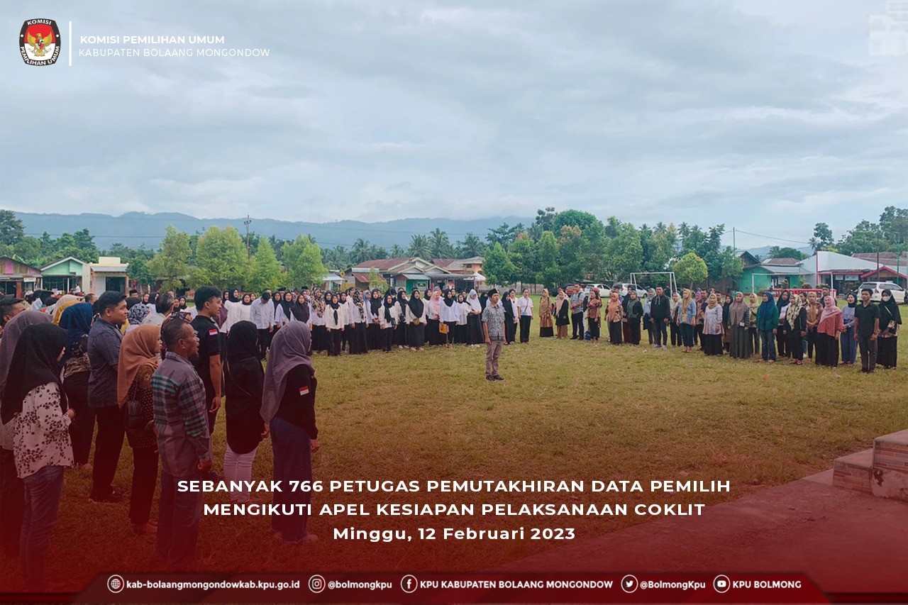 Sambutan Ketua KPU RI ini dibacakan oleh Pembina Apel Kesiapan Pantarlih yang dilaksanakan serentak di 15 (lima belas) kecamatan se- Bolaang Mongondow, dan diikuti juga oleh oleh Ketua dan Anggota KPU Bolmong, jajaran sekretariat serta PPK, PPS dan Pantarlih. Pelaksanaan apel ini juga turut dimonitoring oleh KPU Provinsi Sulawesi Utara.