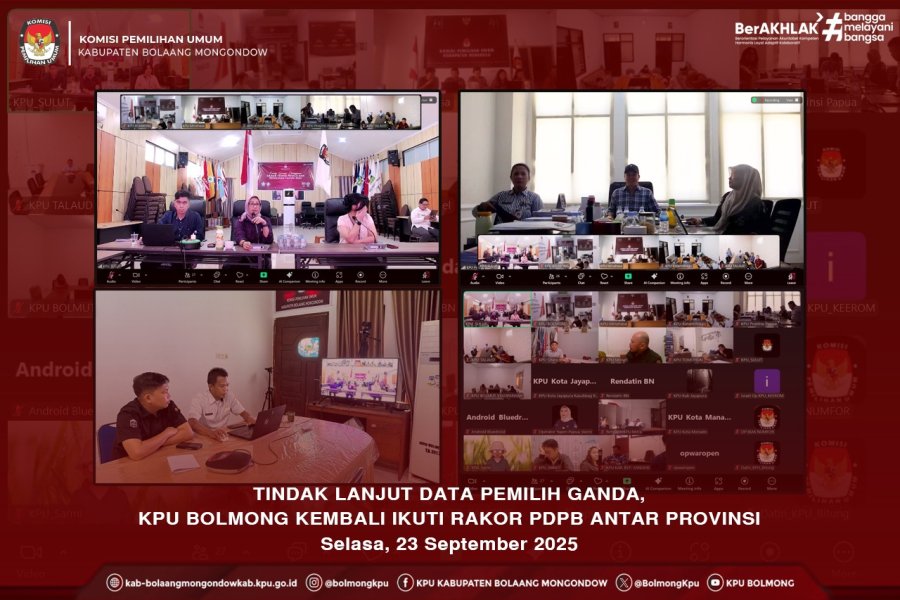 Lolak, kab-bolaangmongondow.kpu.go.id - KPU Kabupaten Bolaang Mongondow mengikuti Rapat Koordinasi PDPB Terkait Data Ganda Antar Provinsi yang dilaksanakan secara daring oleh KPU Provinsi Sulawesi Utara pada Selasa, 23 September 2025.