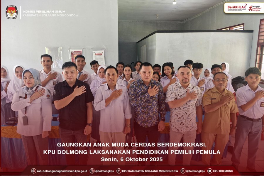 Hal ini ditegaskan Ketua KPU Bolmong, Afif Zuhri dalam sambutannya saat membuka kegiatan KPU Goes to School Sosialisasi Pendidikan Pemilih Pemula di SMK Negeri I Bolaang, Senin (6/10/2025).
