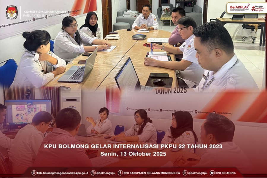 Lolak, kab-bolaangmongondow.kpu.go.id, Senin (13/10/2025) KPU Kabupaten Bolaang Mongondow (Bolmong) menggelar internalisasi Peraturan Komisi Pemilihan Umum Nomor 22 Tahun 2023 tentang Pengelolaan dan Pelayanan Informasi Publik di Komisi Pemilihan Umum, Komisi Pemilihan Umum Provinsi, dan Komisi Pemilihan Umum Kabupaten/Kota.