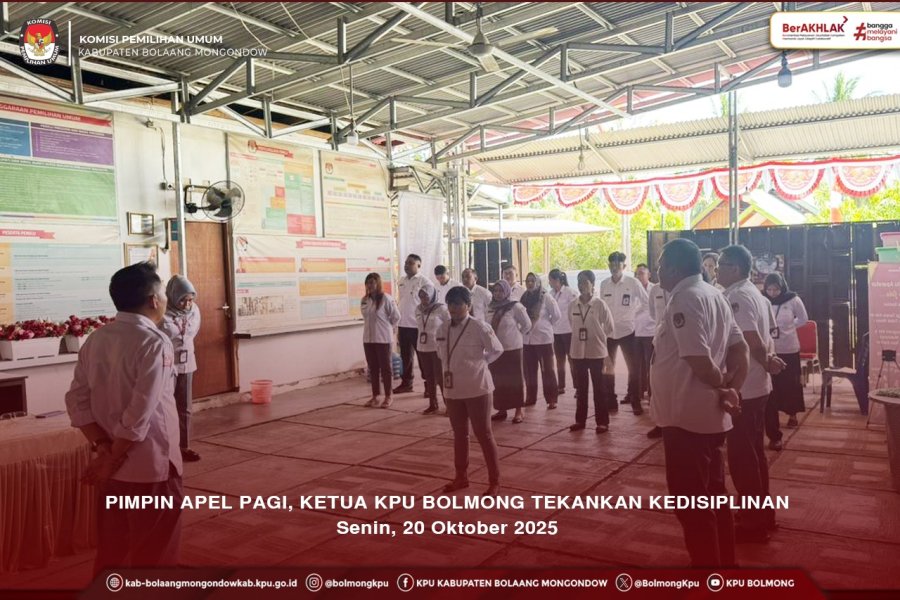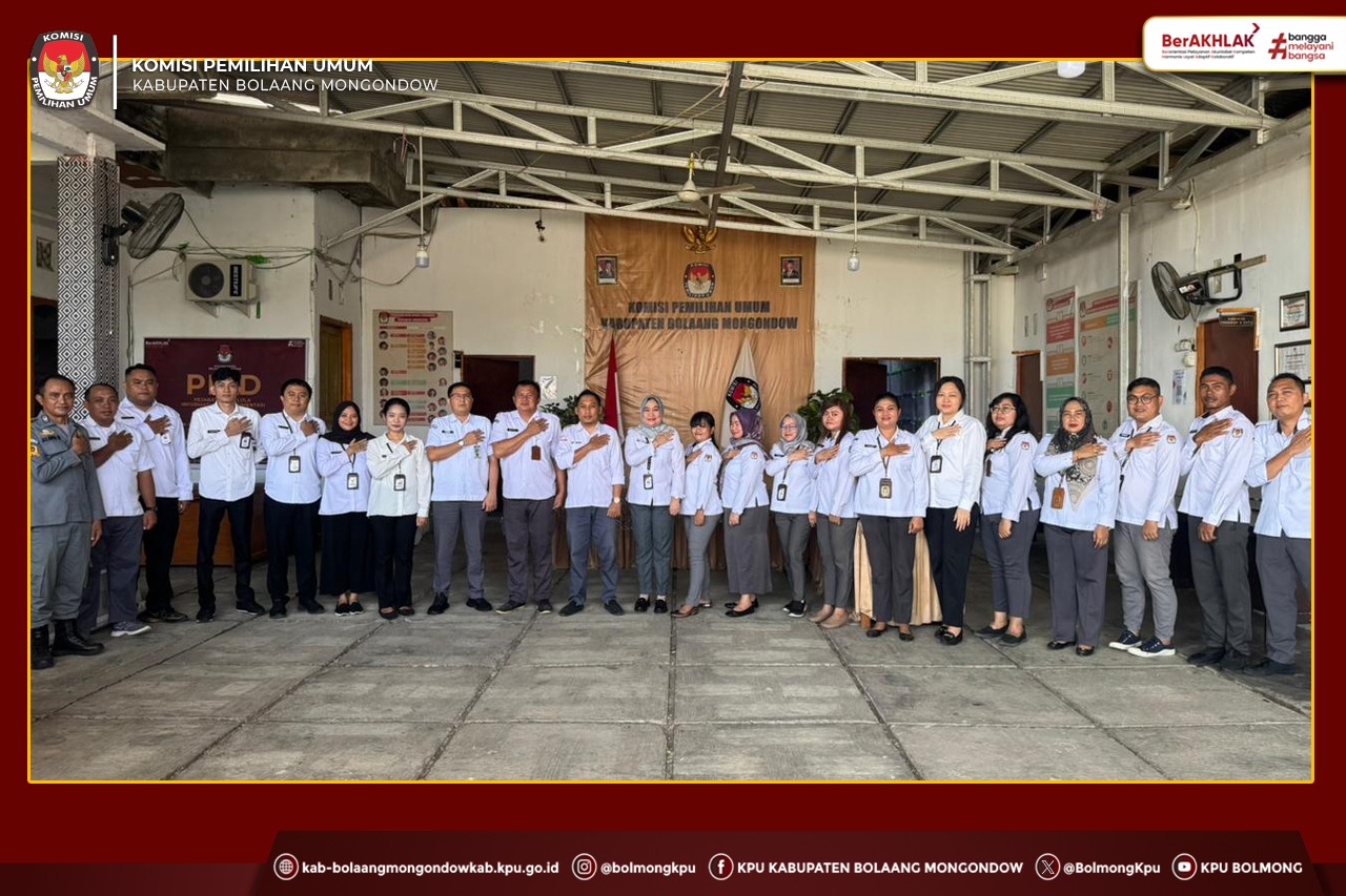 Lolak, kab-bolaangmongondow.kpu.go.id, Ketua KPU Kabupaten Bolaang Mongondow (Bolmong), Afif Zuhri memimpin Apel Pagi, Senin (20/10/2025) yang dilaksanakan di halaman kantor KPU Bolmong.