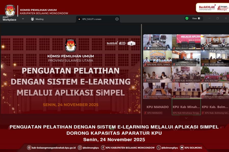 Lolak, kab-bolaangmongondow.kpu.go.id - Komisi Pemilihan Umum (KPU) Provinsi Sulawesi utara bersama PKSDM KPU menggelar rapat penguatan bertajuk “Peningkatan Kapasitas SDM melalui Pelatihan E-Learning SIMPEL” yang berlangsung secara luring di Kantor KPU Sulut dan daring melalui aplikasi virtual meeting. Kegiatan ini menjadi momentum penting dalam penguatan kapasitas aparatur KPU di seluruh wilayah Provinsi Sulawesi Utara.