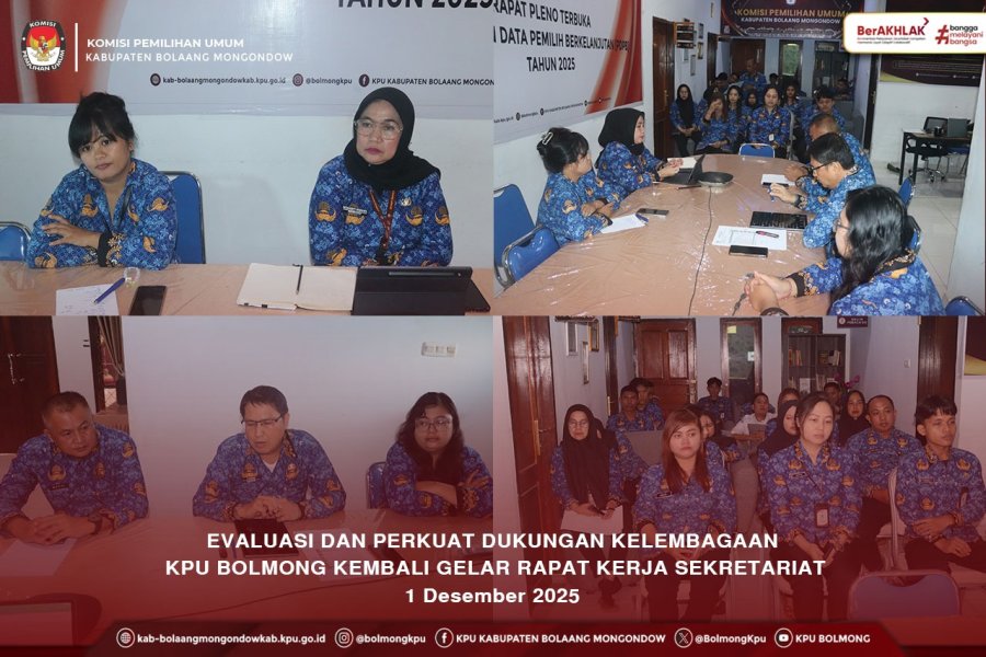 Bolmong, kab-bolaangmongondow.kpu.go.id – Komisi Pemilihan Umum (KPU) Kabupaten Bolaang Mongondow (Bolmong) kembali menggelar rapat kerja rutin Senin (1/12/2025).