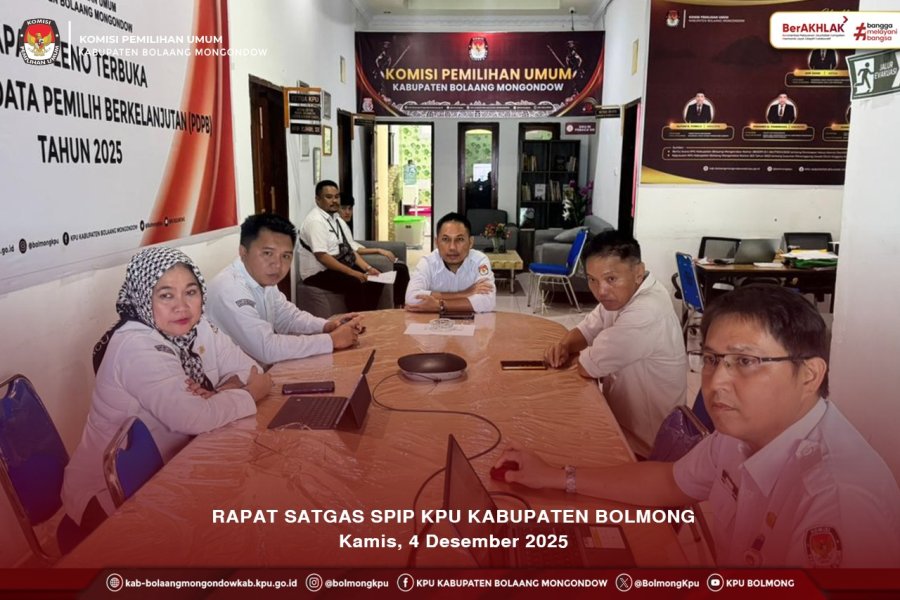 Bolmong, kab-bolaangmongondow.kpu.go.id - Dalam rangka mewujudkan peningkatan kinerja, transparansi, keandalan pelaporan keuangan, akuntabilitas kinerja, pengamanan aset negara, serta ketaatan terhadap peraturan perundang-undangan, KPU Kabupaten Bolaang Mongondow (Bolmong) menggelar Rapat Satgas SPIP periode bulan November 2025.