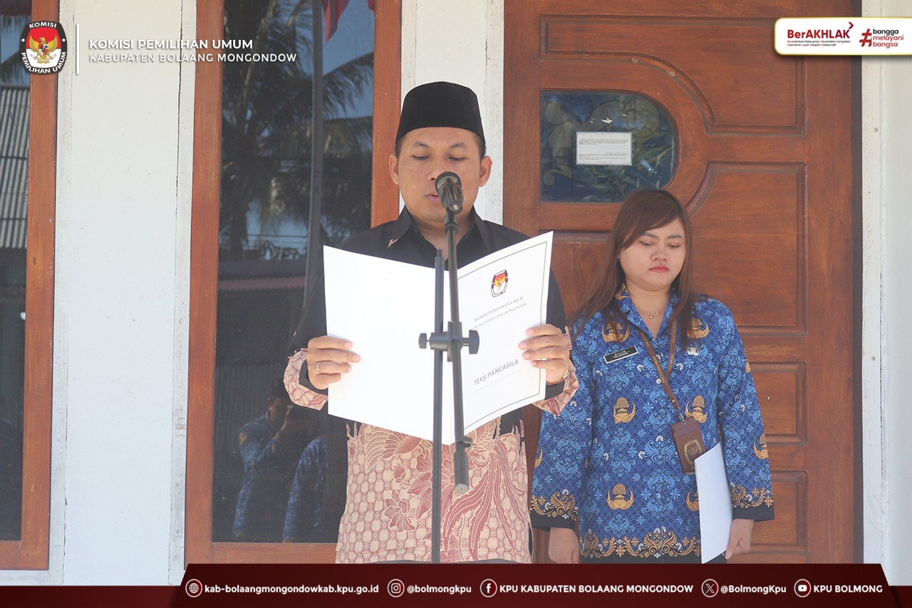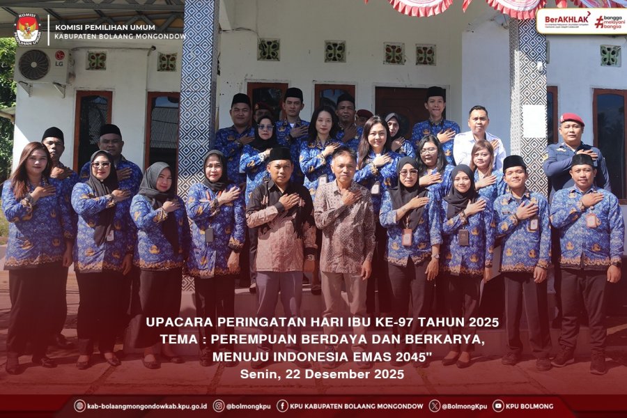 Bolmong, Kab-bolaangmongondow.kpu.id - Suasana khidmat menyelimuti lapangan upacara Halaman Kantor KPU Kabupaten Bolaang Mongondow saat menggelar upacara bendera dalam rangka memperingati Hari Ibu ke-97 pada Senin, (22/12/2025).