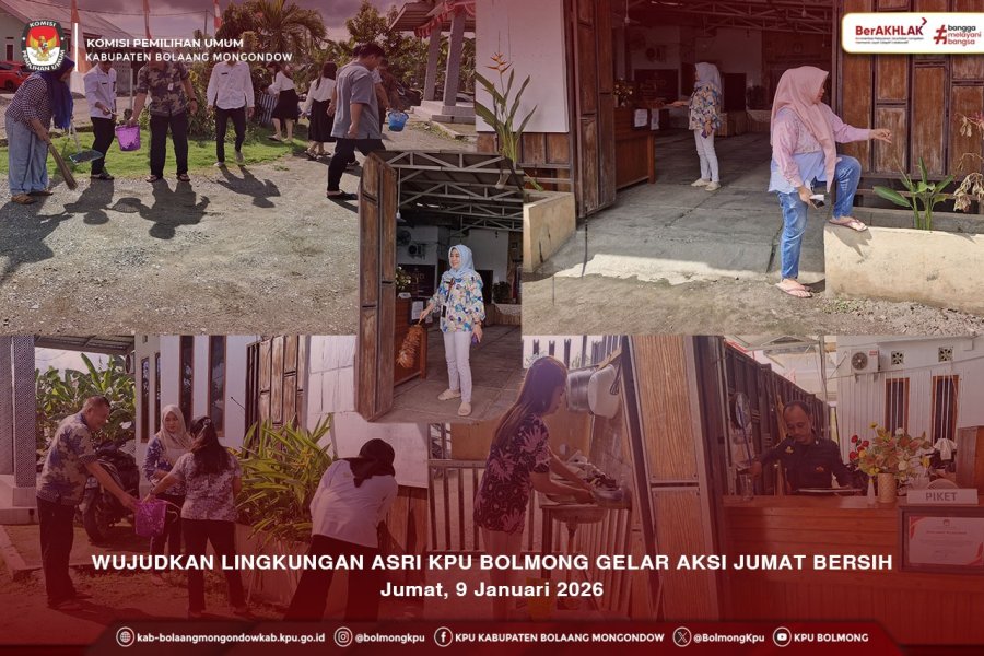 Bolmong, Kab-bolaangmongondow.kpu.id- Dalam rangka menciptakan lingkungan kerja yang bersih, sehat dan nyaman, seluruh jajaran KPU Kabupaten Bolaang Mongondow melaksanakan secara rutin kerja bakti, Jumat. (09/01).
