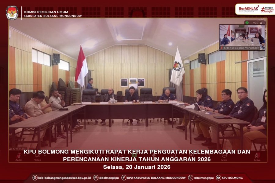Bolmong, Kab-bolaangmongondow.kpu.id - KPU Bolmong mengikuti Rapat Kerja Penguatan Kelembagaan dan Perencanaan Kinerja Tahun Anggaran 2026 Se-Sulawesi Utara dan yang dilaksanakan secara daring oleh KPU Provinsi Sulawesi Utara (SULUT), Selasa (20/01/2026).