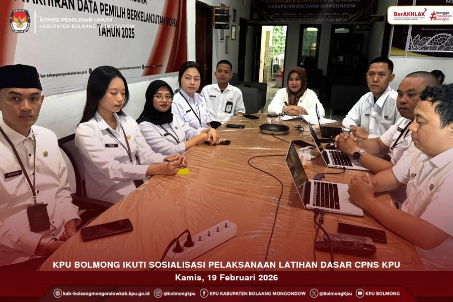 Bolmong, Kab-bolaangmongondow.kpu.id – Komisi Pemilihan Umum (KPU) Kabupaten Bolaang Mongondow terus berkomitmen meningkatkan kualitas sumber daya manusianya. Hal ini dibuktikan dengan partisipasi seluruh Calon Pegawai Negeri Sipil (CPNS) KPU Bolaang Mongondow dalam kegiatan Sosialisasi Pelaksanaan Latihan Dasar (Latsar) yang digelar secara daring melalui Zoom Meeting, Kamis (19/02/2026).