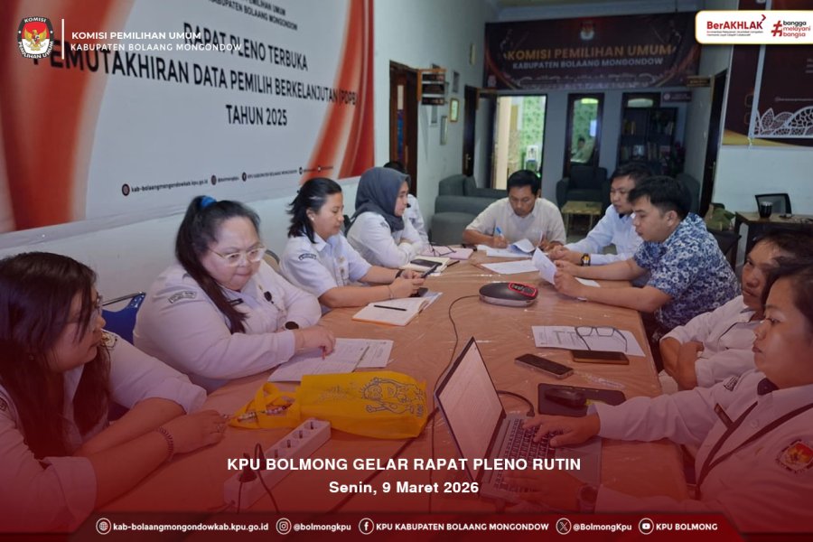 Bolmong, Kab-bolaangmongondow.kpu.id - Sebagai bentuk penguatan manajemen organisasi, KPU Kabupaten Bolaang Mongondowmenyelenggarakan Rapat Pleno Rutin (RPR) pada Senin, (9/03/2026).