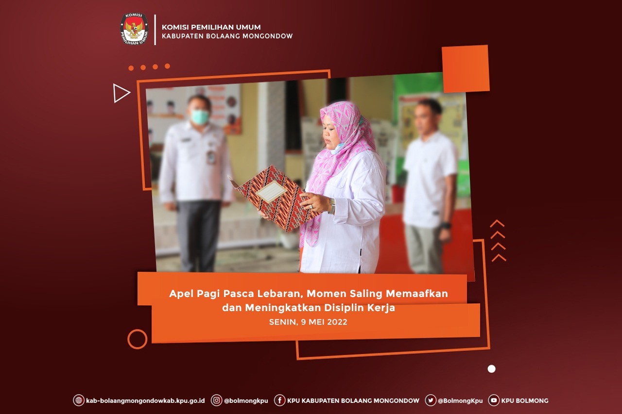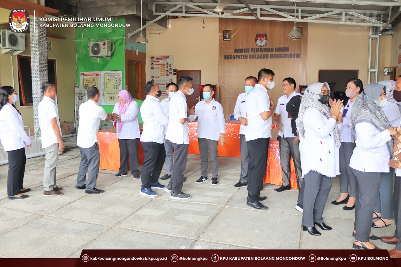 Lolak, kab.bolaangmongondow.kpu.go.id - Hari pertama usai libur dan cuti bersama Idul Fitri 1443 H, digelar Apel Perdana yang diikuti oleh seluruh pejabat dan pegawai di lingkungan Komisi Pemilihan Umum Kabupaten Bolaang Mongondow, Senin (9/5).