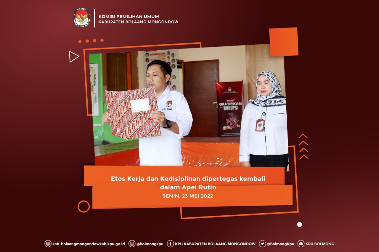 Apel yang berlangsung tertib dan khidmat ini diikuti oleh Ketua dan Anggota KPU, Sekretaris, para Kepala Sub Bagian serta seluruh staf sekretariat KPU Kabupaten Bolaang Mongondow.