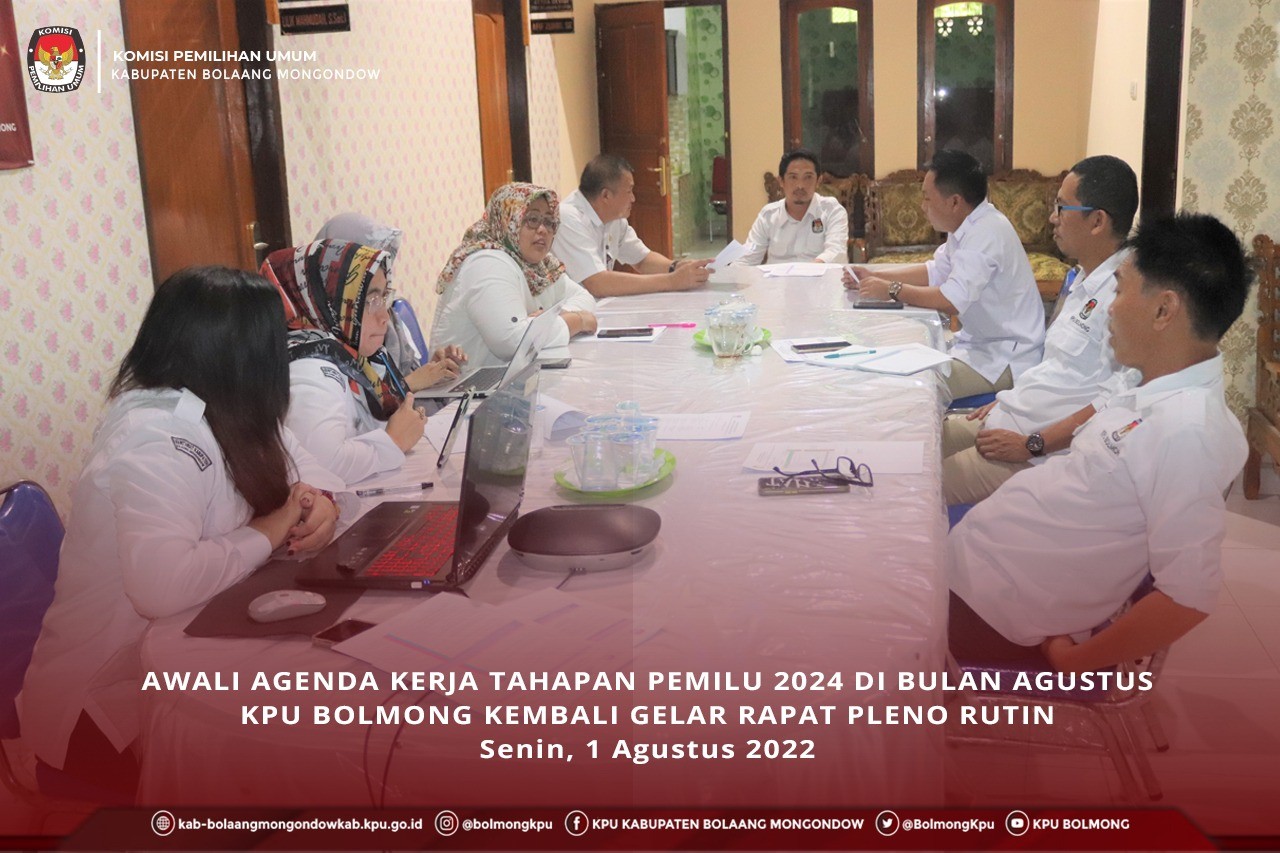 AWALI AGENDA KERJA TAHAPAN PEMILU DI BULAN AGUSTUS, KPU BOLMONG KEMBALI GELAR RAPAT PLENO RUTIN