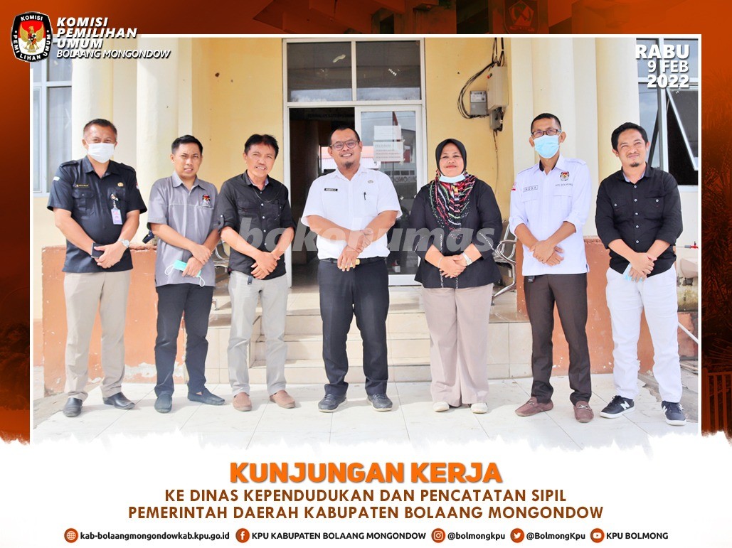Lolak, Bolmong, kab-bolaangmongondow.kpu.go.id - Melanjutkan agenda kunjungan kerja pada Rabu (9/2), KPU Kabupaten Bolaang Mongondow menyambangi Kantor Dinas Kependudukan dan Pencatatan Sipil (Disdukcapil) Kabupaten Bolaang Mongondow.