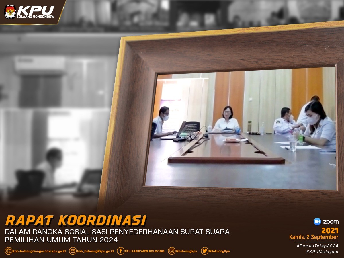 Lolak - Komisi Pemilihan Umum Provinsi Sulawesi Utara melaksanakan Rapat Koordinasi dalam rangka Sosialisasi Penyederhanaan Surat Suara Pemilu Tahun 2024 bersama jajaran KPU Kabupaten/Kota, pada Kamis (2/9) secara daring.