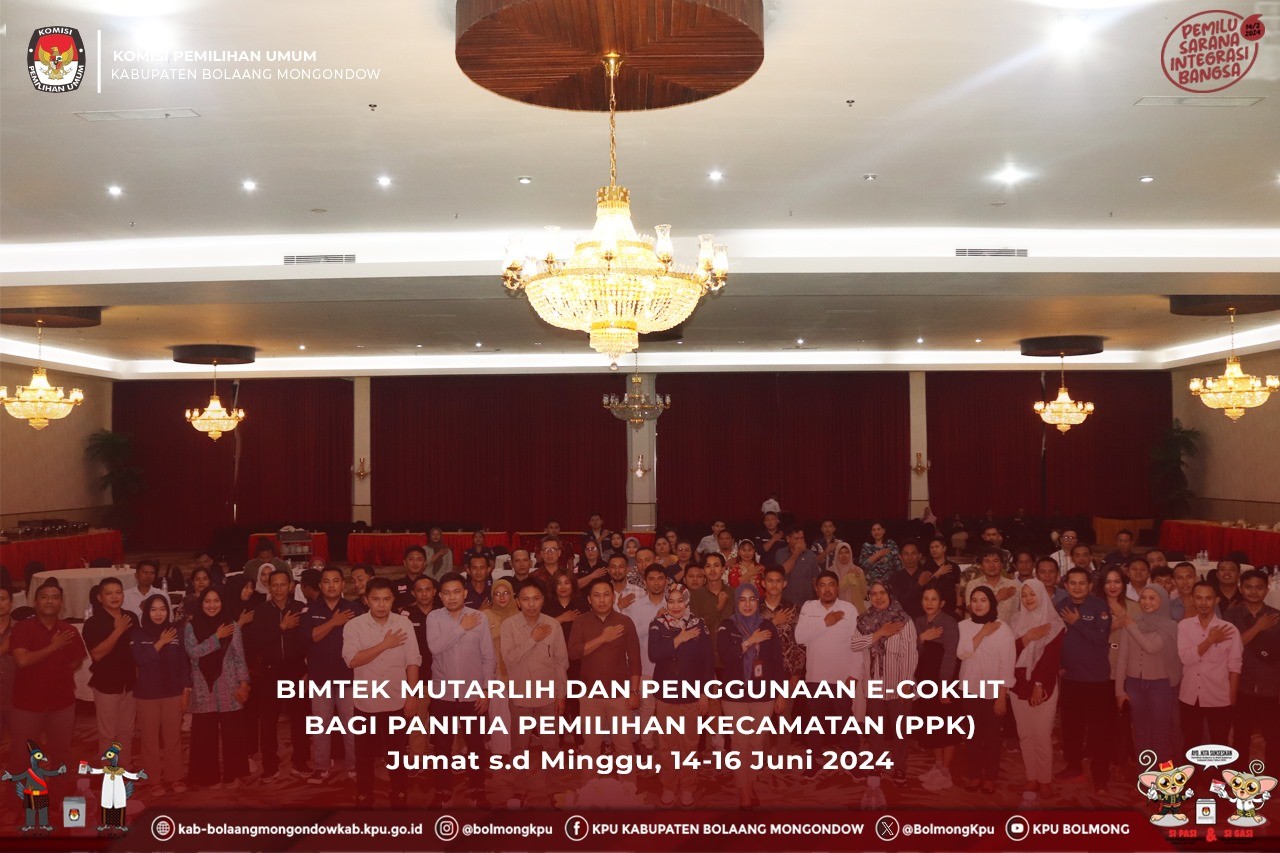 Lolak, kab-bolaangmongondow.kpu.go.id - Memasuki tahapan Pemutakhiran Data Pemilih untuk Pilkada Serentak Tahun 2024, KPU Kabupaten Bolaang Mongondow (Bolmong) melaksanakan Bimbingan Teknis Pemutakhiran Data Pemilih dan Penggunaan Aplikasi E-Coklit Untuk Pemilihan Gubernur dan Wakil Gubernur, Bupati dan Wakil Bupati Tahun 2024, Jumat s.d. Minggu, 14-16 Juni 2024.