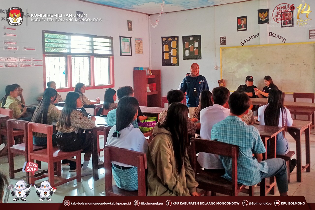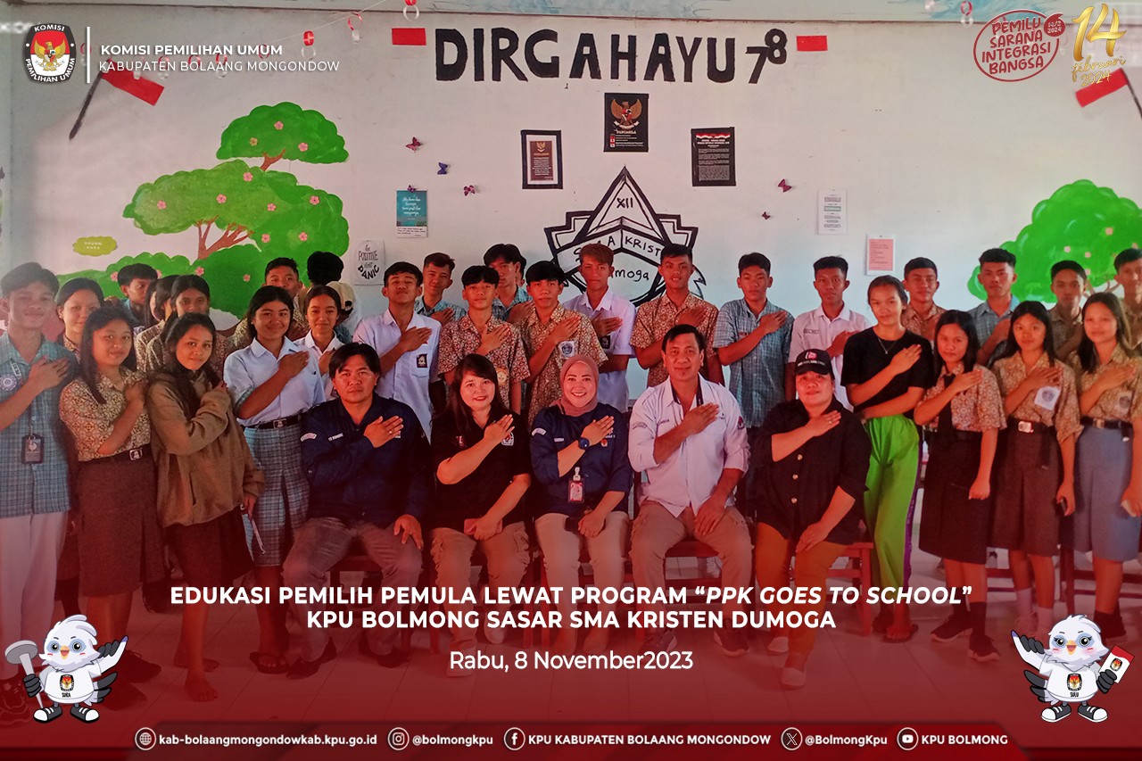 Lolak, kab-bolaangmongondow.kpu.go.id - masuki bulan November tahun 2023, Komisi Pemilihan Umum (KPU) Kabupaten Bolaang Mongondow (Bolmong) gelar edukasi pemilih pemula lewat program bertajuk “PPK Goes to School” di Sekolah Menengah Atas (SMA) Kristen Dumoga. Rabu (8/11/2023)
