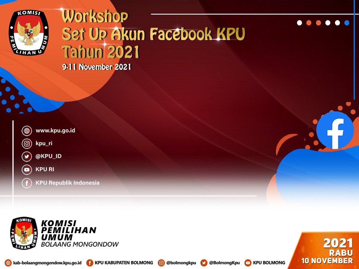 Sehubungan dengan itu, dalam rangka persiapan Pemilu dan Pemilihan tahun 2024, KPU terus berupaya dalam mempersiapkan sarana dan prasarana teknologi informasi serta kapasitas dan kapabilitas sumber daya manusia melalui kegiatan Workshop Set Up Akun Facebook Lembaga Pemerintah secara daring dengan mengundang semua admin/operator akun media sosial resmi dari seluruh satker se- Indonesia yang dilaksanakan secara bergelombang mulai tanggal 9 s.d 11 November 2021.