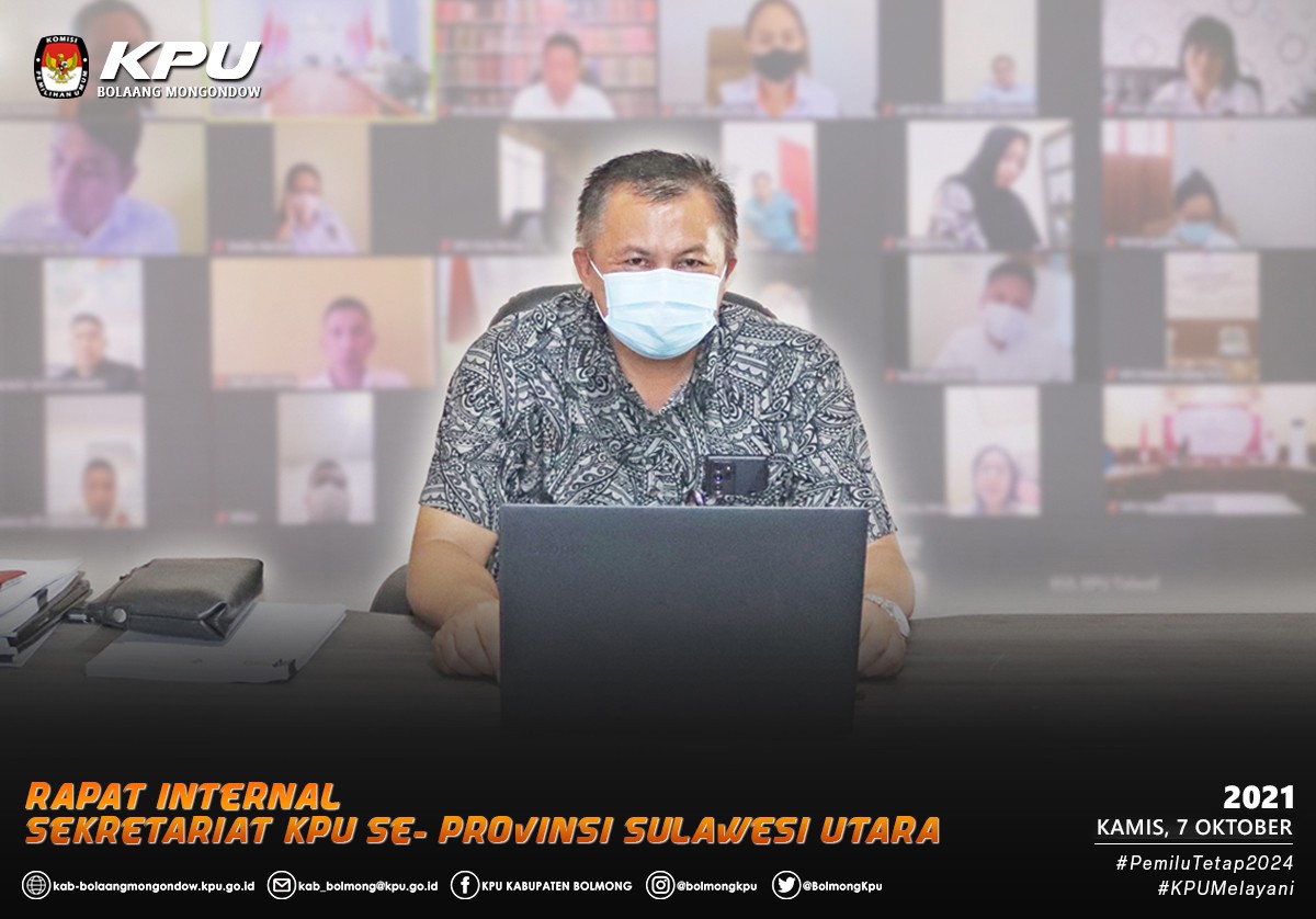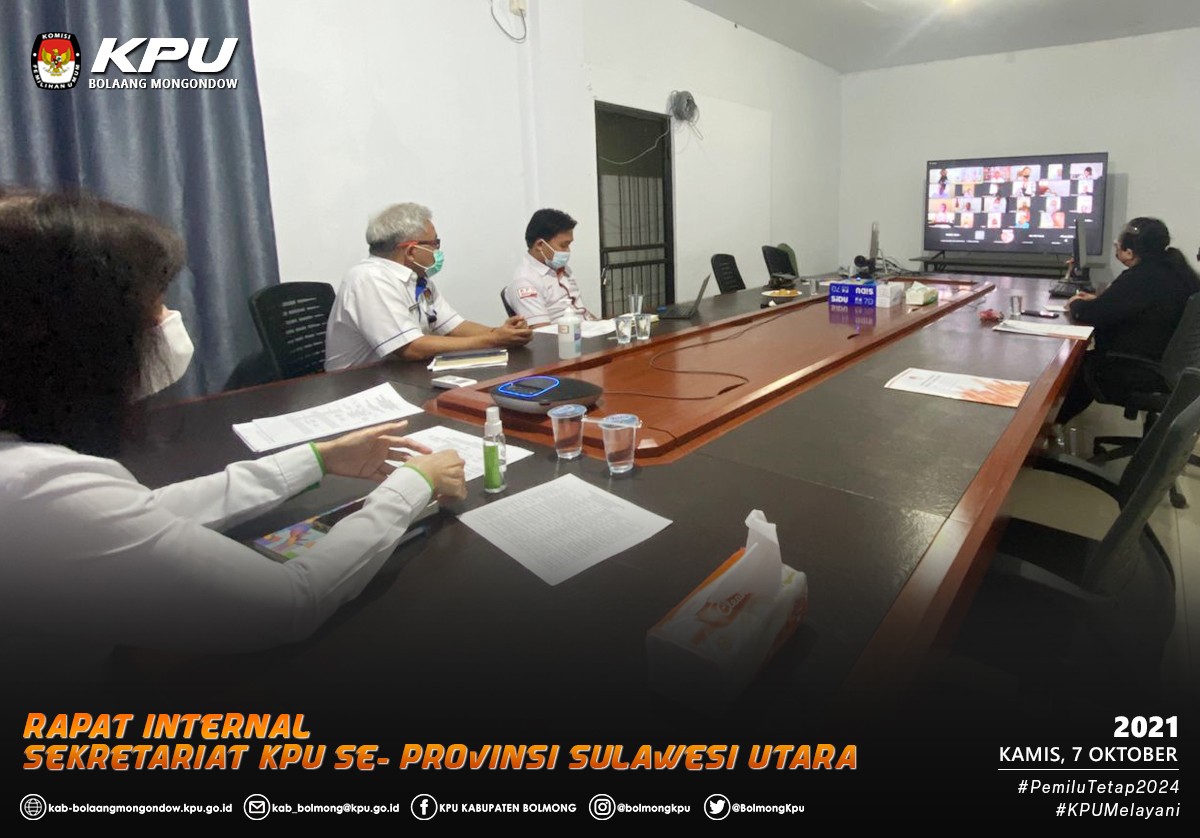 Lolak - Dalam rangka Pemberlakuan Pembatasan Kegiatan Masyarakat (PPKM) termasuk di area kerja perkantoran yang telah ditindaklanjuti melalui penyesuaian sistem kerja pegawai di lingkungan KPU secara berjenjang, dengan mengacu pada Surat Edaran Ketua Komisi Pemilihan Umum Republik Indonesia Nomor 15 Tahun 2021, maka pada Kamis (7/10) KPU Provinsi Sulawesi Utara melaksanakan Rapat Internal di Lingkungan Sekretariat KPU se- Sulawesi Utara.