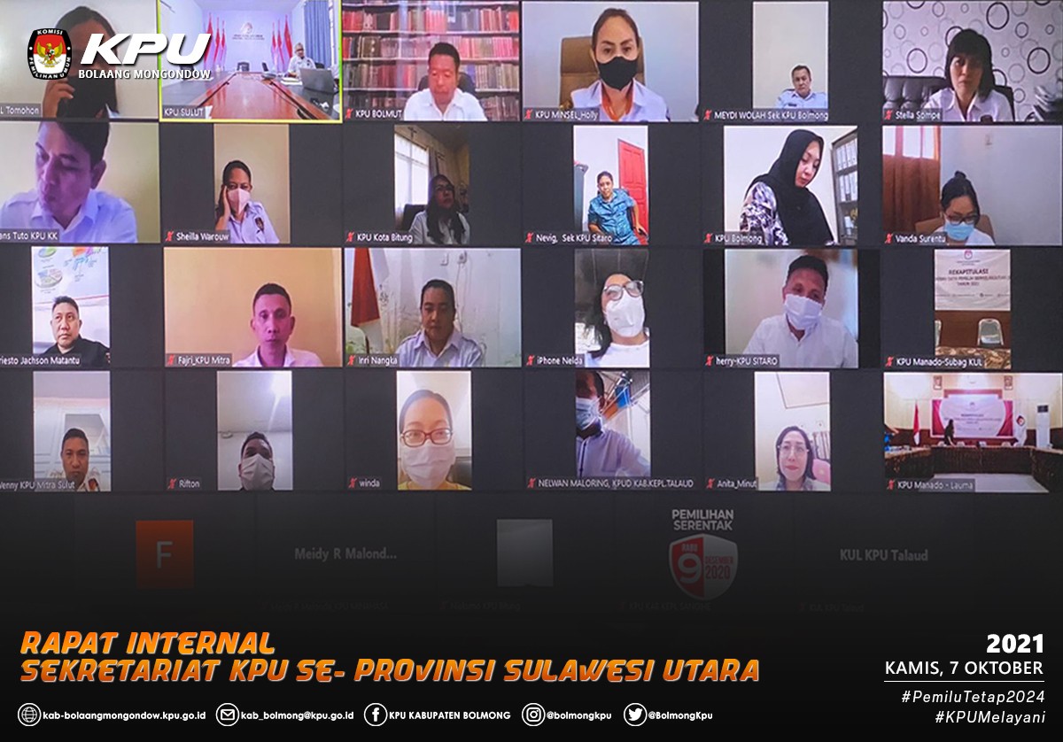 EVALUASI PELAKSANAAN WFO DAN WFH, KPU BOLMONG IKUTI RAPAT INTERNAL DI LINGKUNGAN SEKRETARIAT KPU SE- SULAWESI UTARA.