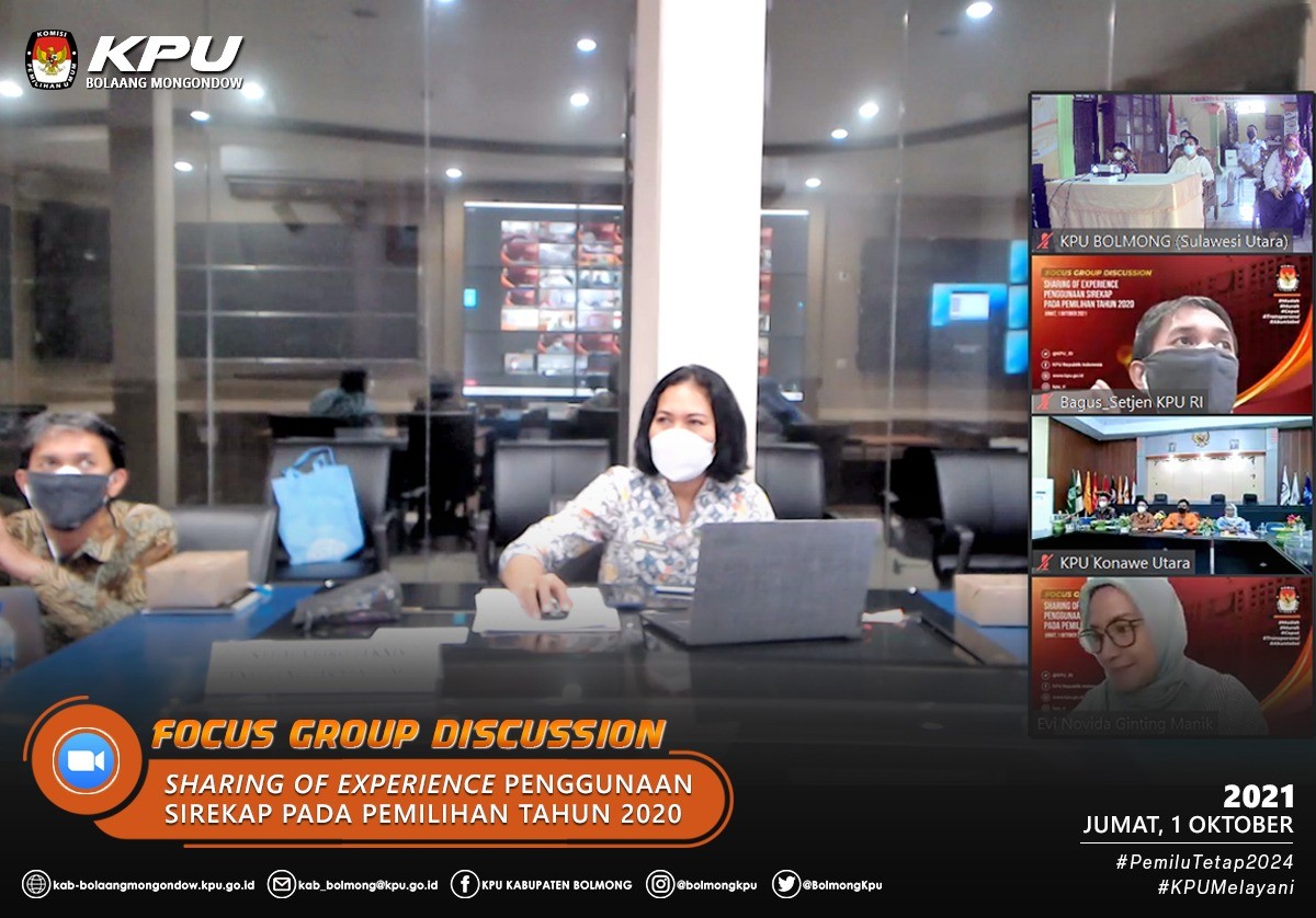 EVALUASI PENGGUNAAN APLIKASI SIREKAP, KPU BOLMONG IKUTI FOCUS GROUP DISCUSSION YANG DIGELAR KPU RI