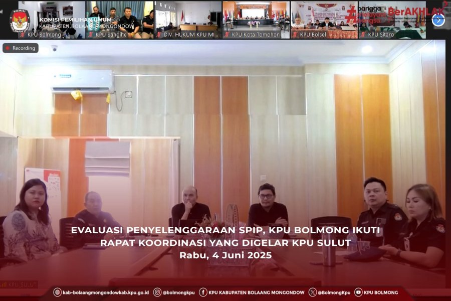 Lolak, kab-bolaangmongondow.kpu.go.id - Rabu (4/6/2025), KPU Kabupaten Bolaang Mongondow (Bolmong) mengikuti kegiatan Rapat Koordinasi (Rakor) Hasil Monitoring dan Evaluasi Kartu Kendali Sistem Pengendalian Intern Pemerintah (SPIP) Triwulan III dan Triwulan IV Tahun 2024 yang digelar KPU Provinsi Sulawesi Utara (Sulut) secara daring.