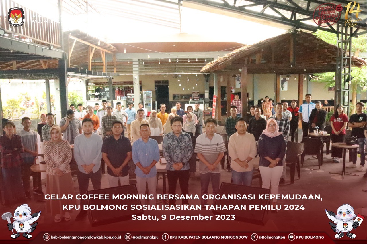 Lolak, kab-bolaangmongondow.kpu.go.id - Sabtu (9/12/2023), KPU Kabupaten Bolaang Mongondow (Bolmong) menggelar acara Coffee Morning dengan Tema Partisipasi Organisasi Kepemudaan Dalam Pemilihan Umum Tahun 2024.