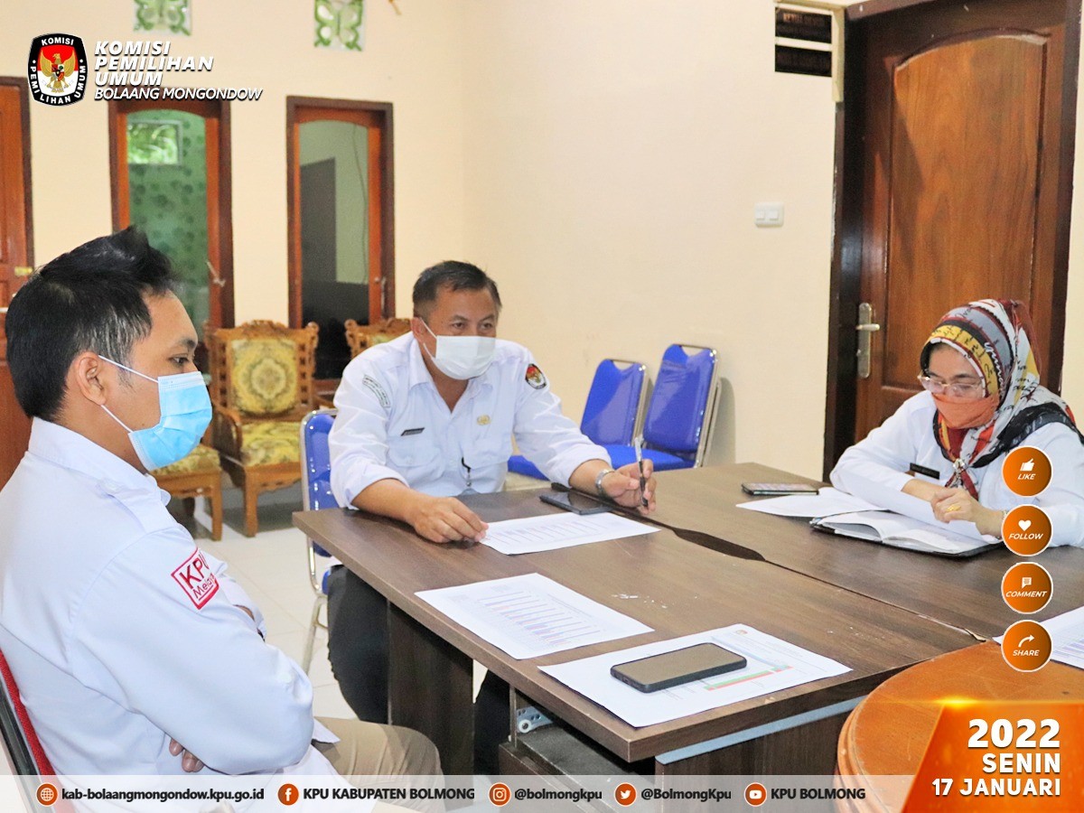 Lolak, Bolmong, kab-bolaangmongondow.kpu.go.id - Dalam rangka melaksanakan agenda pengambilan kebijakan rutin sebagaimana diatur dalam Peraturan KPU Nomor 4 Tahun 2021 tentang Perubahan Ketiga Atas Peraturan KPU Republik Indonesia Nomor 8 Tahun 2019 tentang Tata Kerja Komisi Pemilihan Umum, Komisi Pemilihan Umum Provinsi, dan Komisi Pemilihan Umum Kabupaten/Kota, maka pada Senin (17/1) KPU Kabupaten Bolaang Mongondow kembali melaksanakan Rapat Pleno Rutin Minggu III Januari.