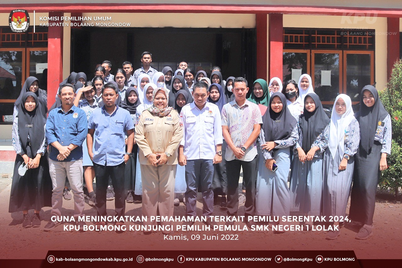 Lolak, kab-bolaangmongondow.kpu.go.id - Sebagai upaya peningkatan pengetahuan, pemahaman, dan kesadaran Pemilih Pemula tentang Pemilu, Komisi Pemilihan Umum Kabupaten Bolaang Mongondow melaksanakan kegiatan Pendidikan Pemilih kepada Siswa-Siswi SMK Negeri I Lolak, Kamis (9/6).