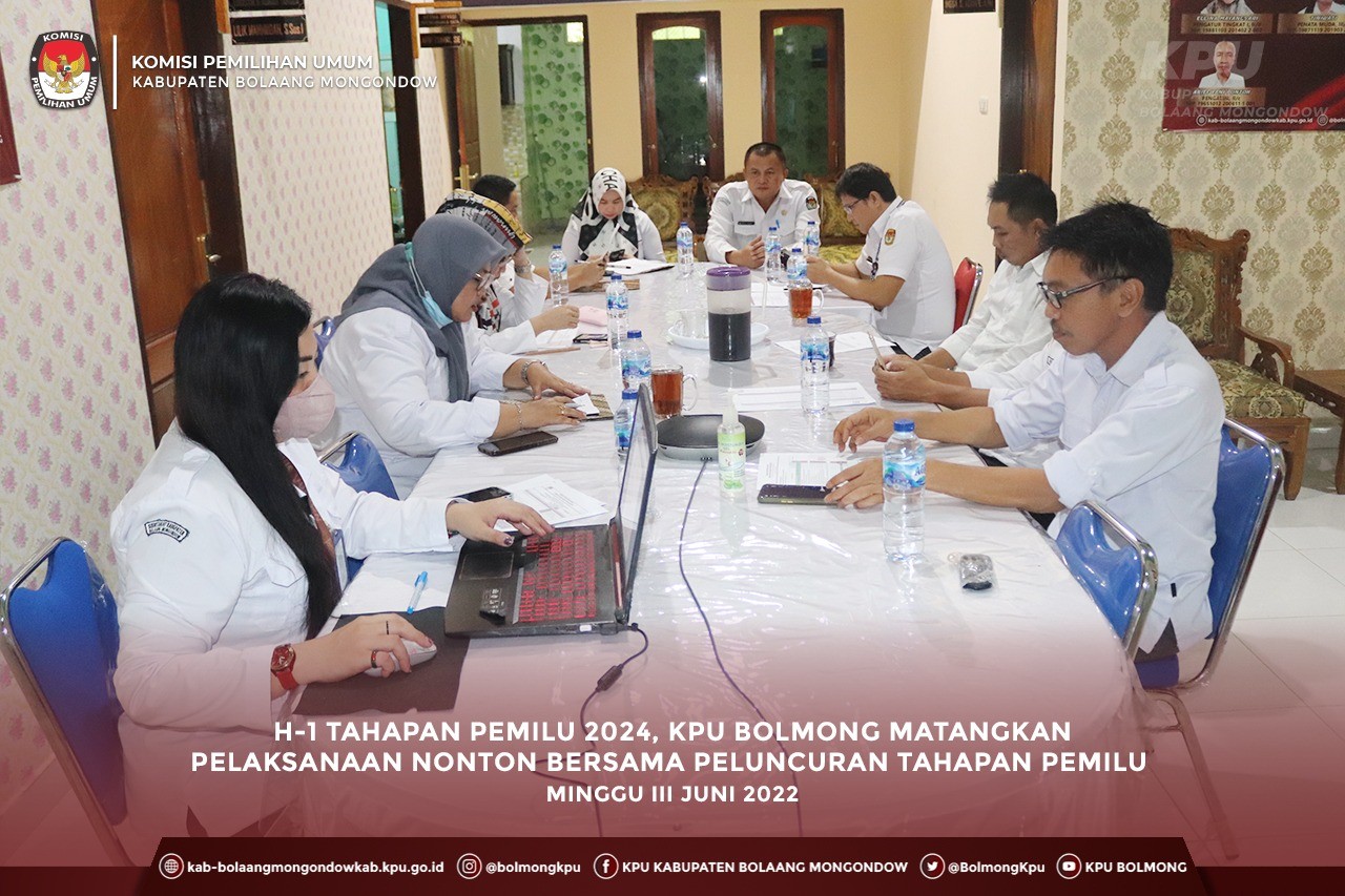 H-1 TAHAPAN PEMILU 2024, KPU BOLMONG MATANGKAN PELAKSANAAN NONTON BERSAMA PELUNCURAN TAHAPAN PEMILU PADA RAPAT PLENO RUTIN