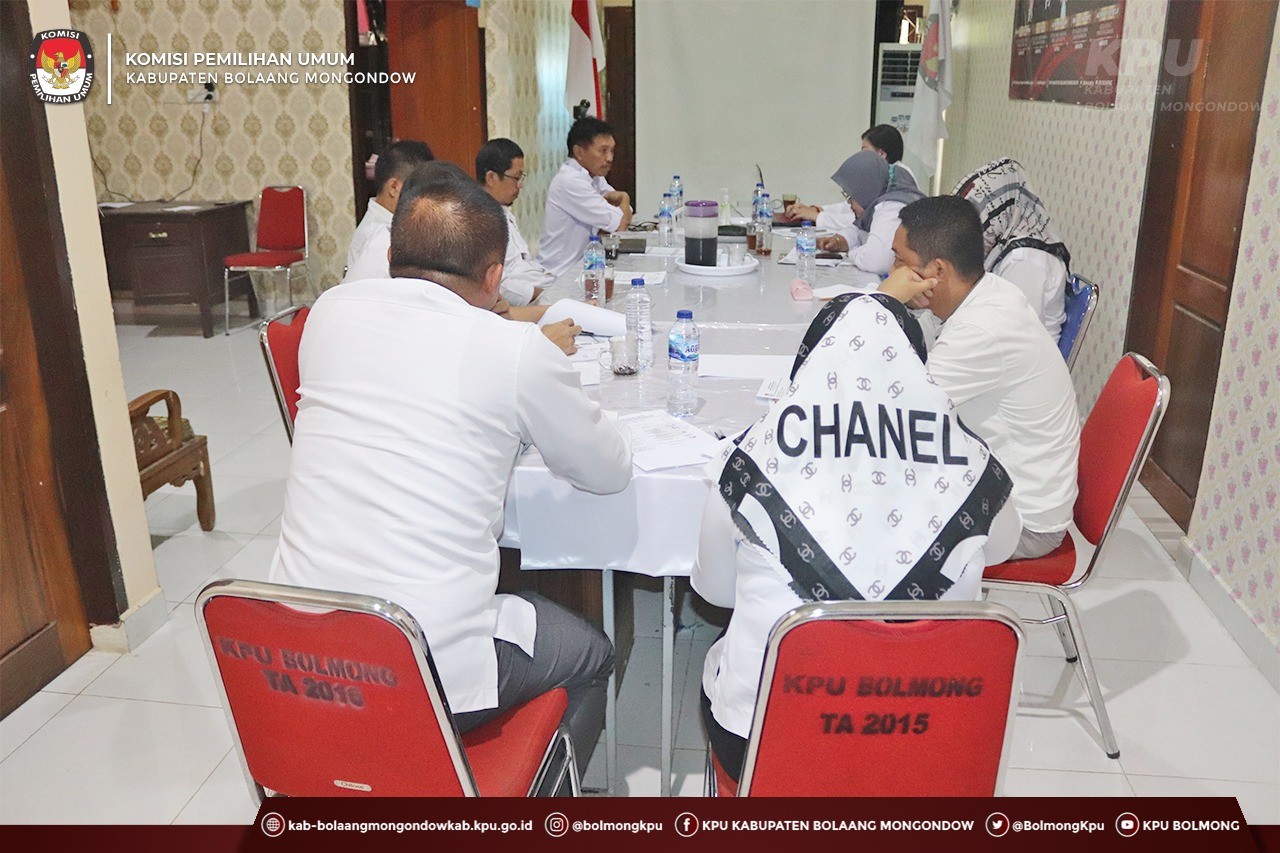 Lolak, kab.bolaangmongondow.kpu.go.id - Sebagai bagian dari tugas dan tanggung jawab sebagai penyelenggara Pemilu dan Pemilihan, KPU Kabupaten Bolmong secara rutin menggelar rapat pleno di setiap minggunya, tak terkecuali pada Senin (13/6), yang dipimpin oleh Ketua KPU, Lilik Mahmudah dan turut dihadiri secara paripurna oleh Anggota KPU, Sekretaris, para Kepala Subbagian dan staf selaku notulen.