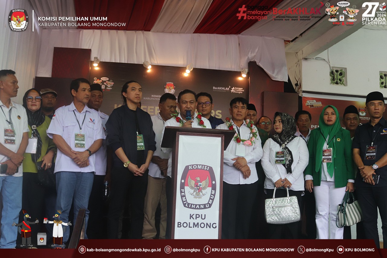 Lolak, kab-bolaangmongondow.kpu.go.id - Komisi Pemilihan Umum Kabupaten Bolaang Mongondow (KPU Bolmong) menerima pendaftaran Bakal Pasangan Calon (Bakal Paslon) Bupati Sukron Mamonto dan Wakil Bupati Bolmong, Refly Stenly Ombuh yang diusung oleh Partai Nasional Demokrat (NasDem), Partai Persatuan Pembangunan (PPP), dan Partai Perindo dan Partai Demokrat. di Kantor KPU Bolmong, Kamis (29/08/2024).
