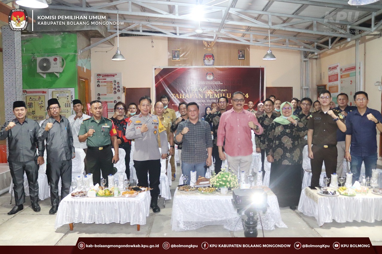 Penjabat Bupati Bolaang Mongondow, Limi Mokodompit yang hadir di kantor KPU Bolmong mengajak semua jajaran Forkopimda, KPU, Bawaslu, pemerintah di tingkat kecamatan dan desa serta seluruh lapisan masyarakat untuk saling bersinergi dan bergandengan tangan dalam menyukseskan pesta demokrasi ini, demi melahirkan pemimpin-pemimpin baru yang berkualitas serta mencapai cita-cita bersama yaitu terwujudnya Indonesia yang aman dan damai.