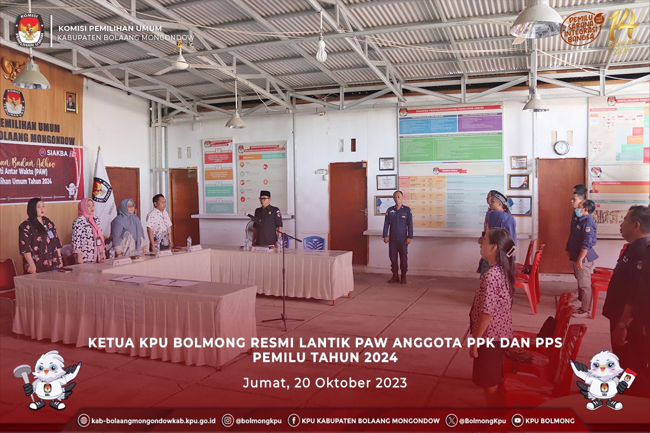 Di awal kegiatan, sebagaimana tercantum dalam Keputusan Komisi Pemilihan Umum Kabupaten Bolaang Mongondow Nomor 317 Tahun 2023 tentang Penggantian Anggota Panitia Pemungutan Suara Desa Ibolian dan Penggantian Anggota Penitia Pemungutan Suara Desa Mototabian Kabupaten Bolaang Mongondow Untuk Pemilihan Umum Tahun 2024. Pada kesempatan tersebut dilaksanakan pembacaan Keputusan oleh Kepala Sub Bagian Divisi Hukum dan SDM, Evie Jane Indria, penandatanganan Berita Acara Pelantikan dan Sumpah/Janji serta pembacaan dan penandatanganan Pakta Integritas oleh PPS pengganti antar waktu Desa Ibolian atas nama Hartini Mokodompit, dan Desa Mototabian nama Christya G. Mewoh.