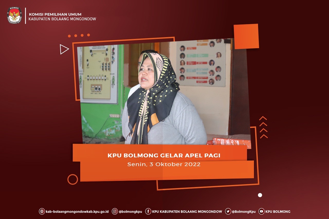 Lolak, kab-bolaangmongondow.kpu.go.id - Ketua KPU Kabupaten Bolaang Mongondow, Lilik Mahmudah menyampaikan arahan dalam Apel Pagi yang dilaksanakan di halaman di kantor, Senin (3/10).