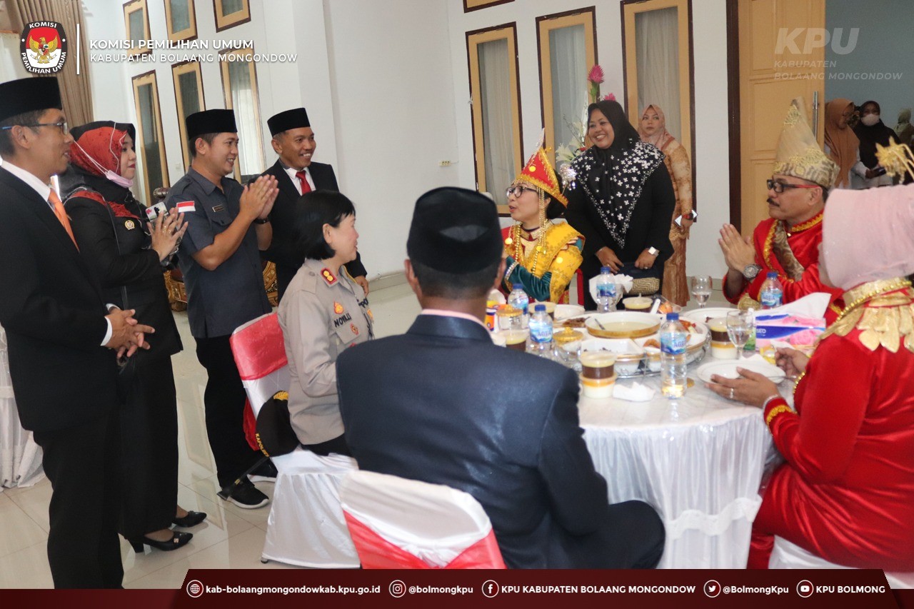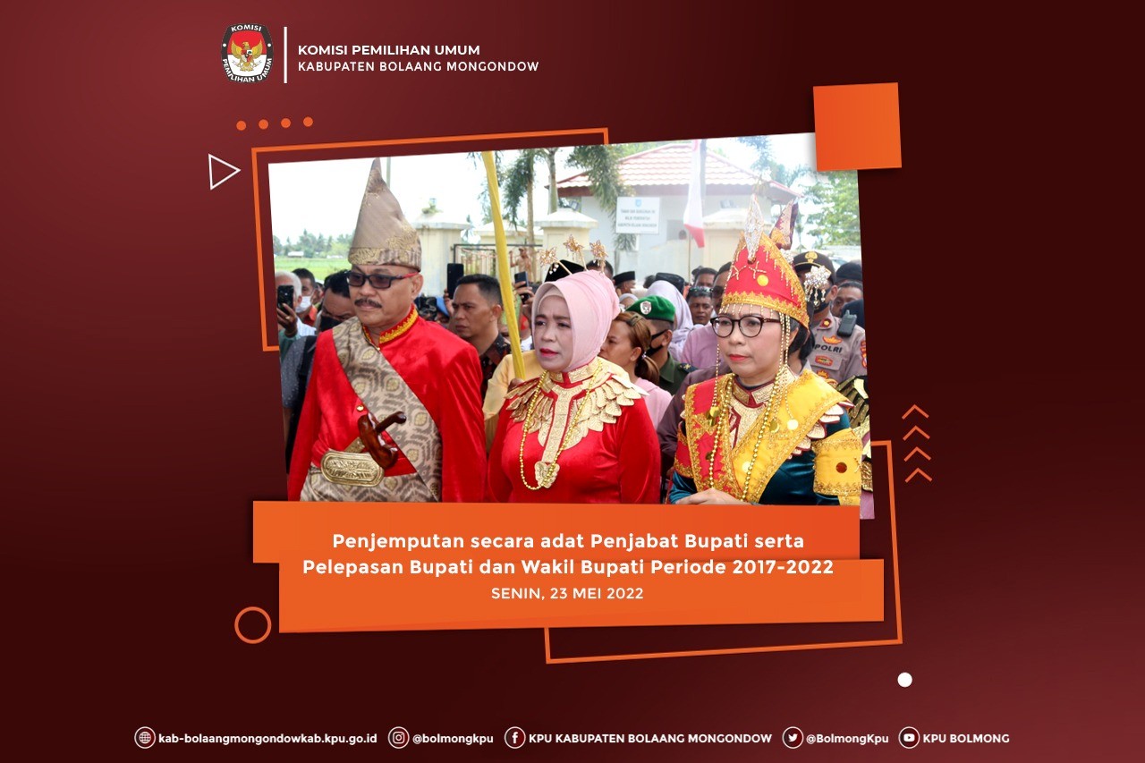 Lolak, kab-bolaangmongondow.kpu.go.id - Komisioner KPU Kabupaten Bolaang Mongondow mengikuti acara penjemputan secara adat Penjabat (Pj) Bupati Bolaang Mongondow, Ir. Limi Mokodompit, M.M., serta Pelepasan Bupati dan Wakil Bupati periode 2017-2022, Dra. Hj. Yasti Soepredjo Mokoagow dan Yanny Ronny Tuuk, S.Th., M.M., Senin (23/5).