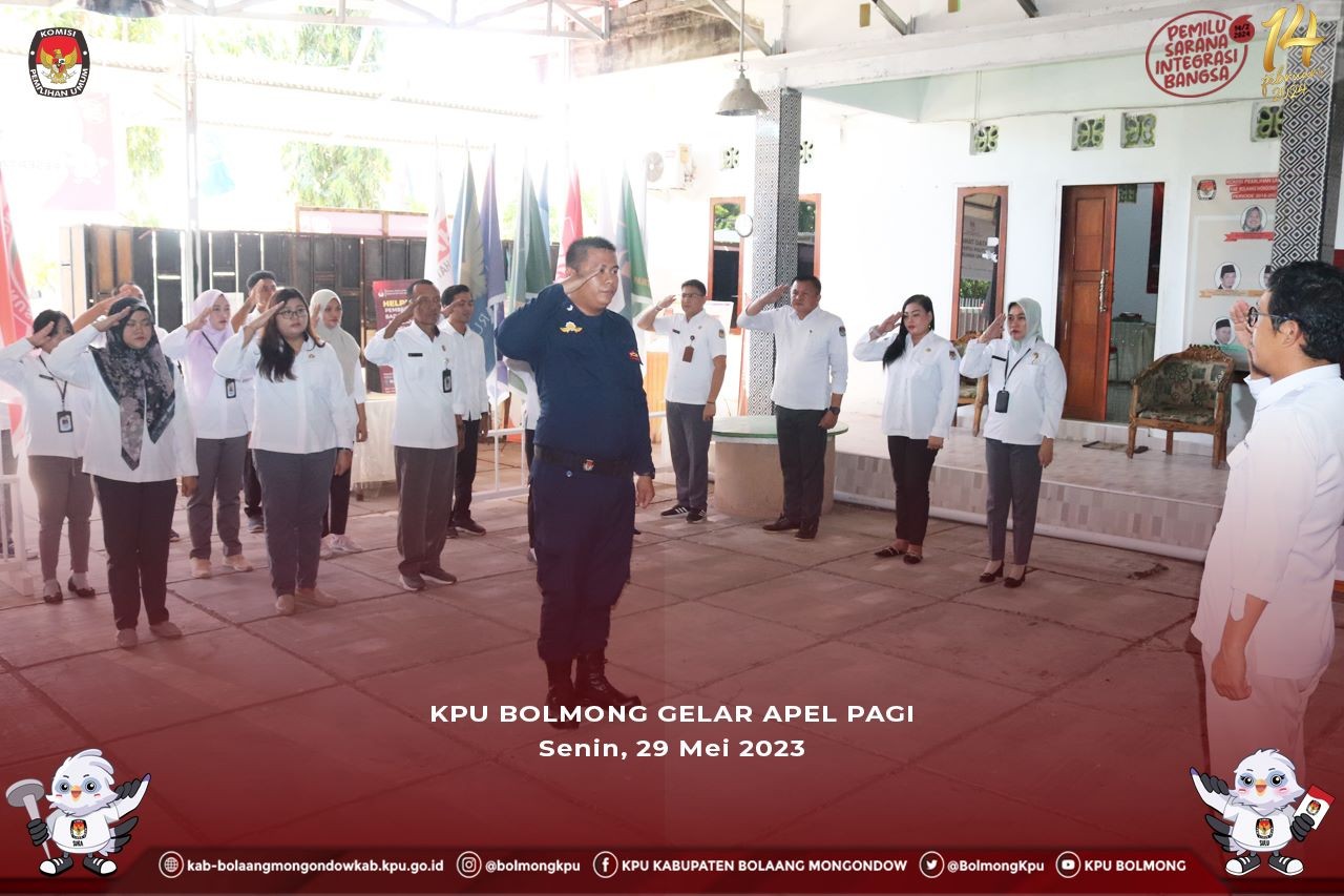 Lolak, kab-bolaangmongondow.kpu.go.id -Senin(29/5) KPU Kabupaten Bolaang Mongondow menggelar Apel Pagi pada Senin, 29 Mei 2023 yang dipimpin oleh Ketua Divisi Hukum dan Pengawasan, Ingga S. Adampe.