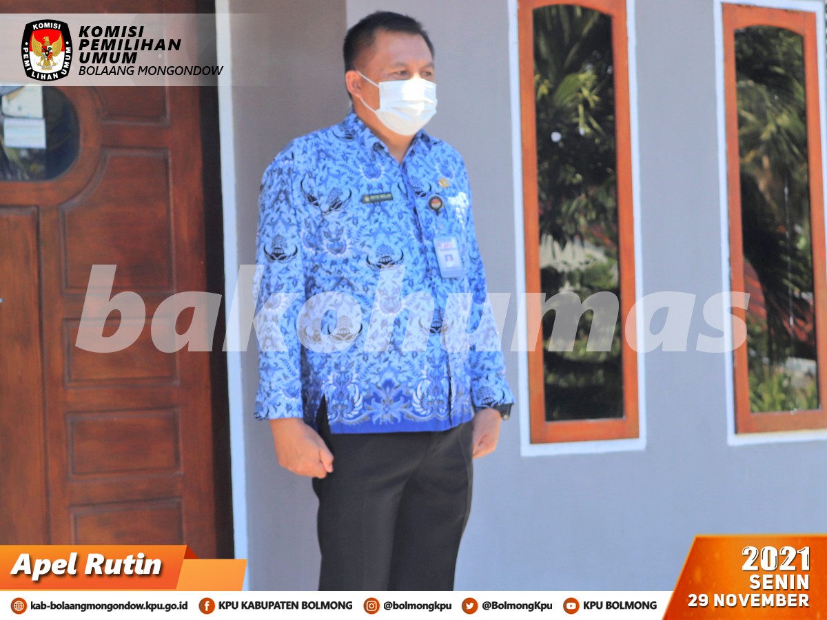 Lolak, kab-bolaangmongondow.kpu.go.id - KPU Kabupaten Bolaang Mongondow menggelar Apel Pagi di halaman kantor yang diikuti oleh Sekretaris, para Kepala Sub Bagian dan staf sekretariat pada Senin (29/11).