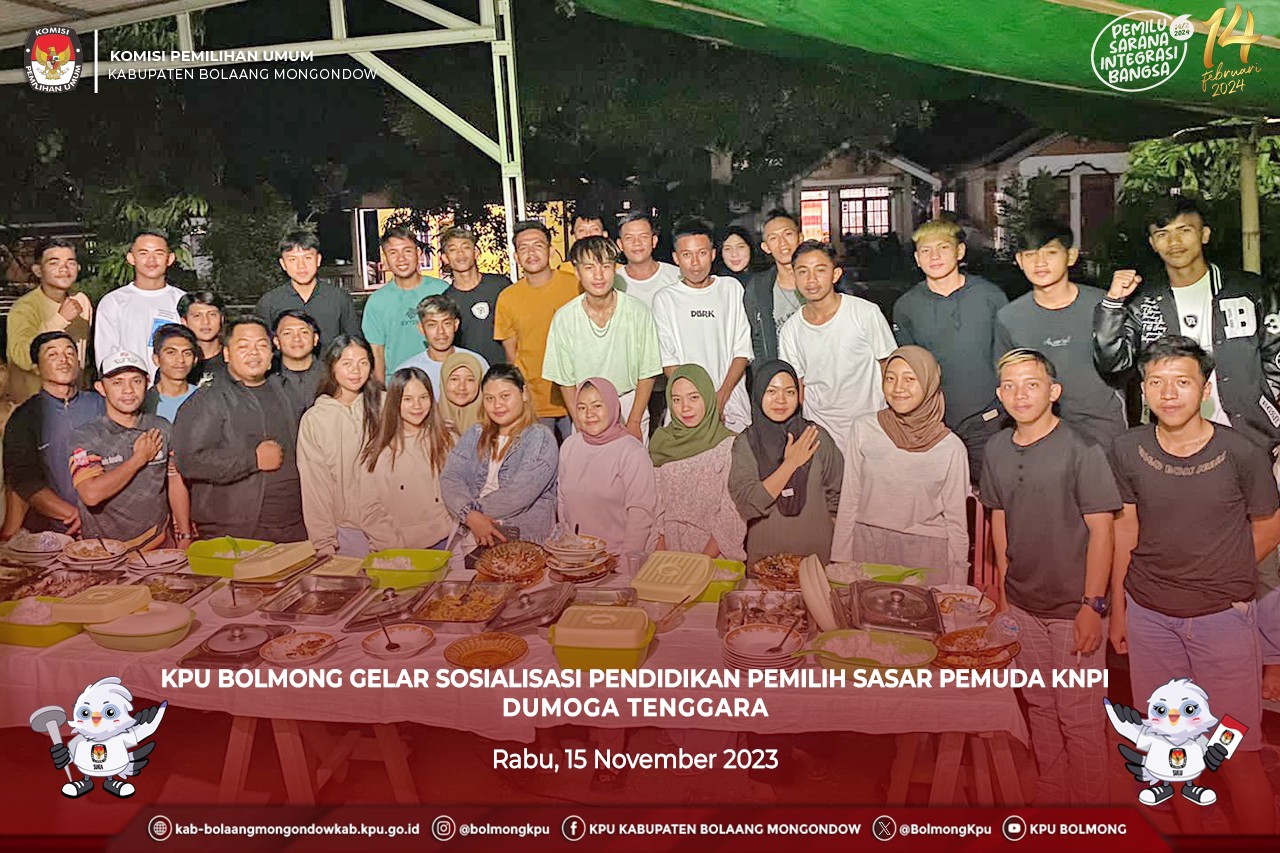 Lolak - kab-bolaangmongondow.kpu.go.id - dalam rangka mewujudkan pemilih cerdas memilih serta untuk meningkatkan partisipasi masyarakat dalam Pemilu tahun 2024, KPU Kabupaten Bolaang Mongondow (Bolmong) terus melakukan sosialisasi dan pendidikan pemilih (Sosdiklih). Kali ini dilaksanakan melalui Panitia Pemilihan Kecamatan (PPK) Dumoga Tenggara dengan peserta Pemuda Komite Nasional Pemuda Indonesia (KNPI) Kecamatan Dumoga Tenggara, Rabu (15/11/2023).