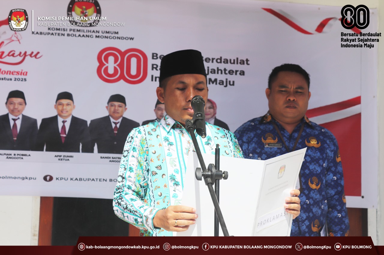 Ketua KPU Bolmong, Afif Zuhri bertindak sebagai Inspektur Upacara. Dalam amanatnya beliau menyampaikan bahwa perjuangan para pahlawan mengajarkan kita semangat yang bagaikan api tak padam. Namun, perjuangan belum selesai, tugas kita sekarang adalah mengisi kemerdekaan, melanjutkan perjuangan dengan terus semangat melaksanakan tugas tanggung jawab dan pekerjaan sehari-hari, khususnya tugas-tugas sebagai penyelenggara Pemilu/Pemilihan.