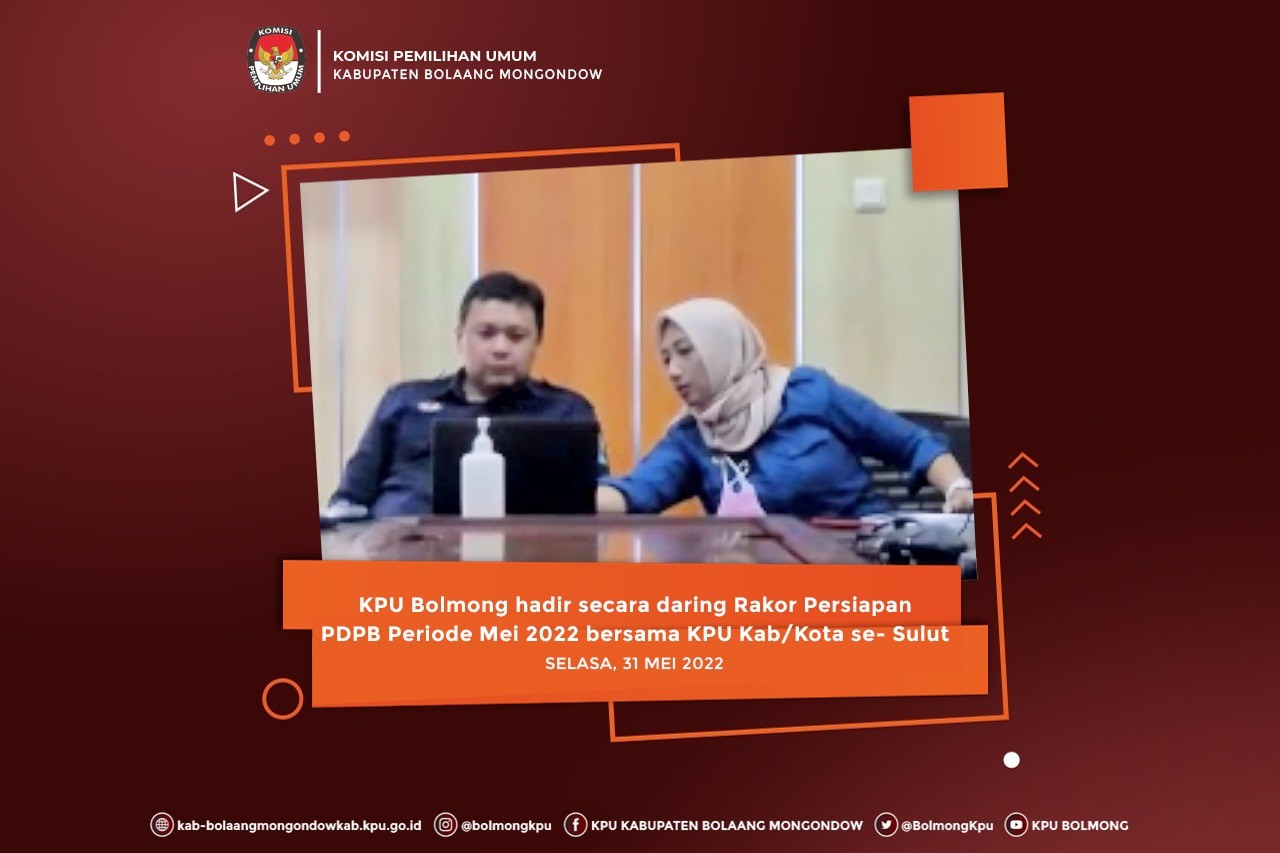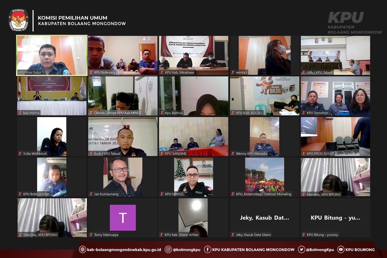 Lolak, kab-bolaangmongondow.kpu.go.id - KPU Kabupaten Bolaang Mongondow mengikuti Rapat Koordinasi Persiapan Pemutakhiran Daftar Pemilih Berkelanjutan Periode Bulan Mei 2022 yang diselenggarakan oleh KPU Provinsi Sulawesi Utara, sesuai surat undangan KPU Provinsi Sulawesi Utara Nomor 167/TIK.04-Und/71/2022, kegiatan yang dilaksanakan secara daring ini diikuti oleh Ketua Divisi Perencanaan, Data dan Informasi, Kasubag Divisi Perencanaan, Data dan Informasi serta Operator Sidalih Kabupaten/Kota Se-Sulawesi Utara.