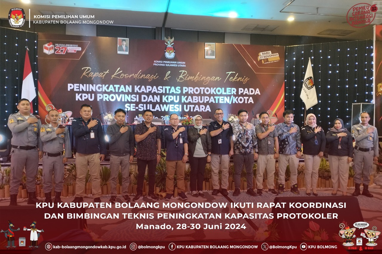 Lolak, kab-bolaangmongondow.kpu.go.id/ - Komisi Pemilihan Umum (KPU) Kabupaten Bolaang Mongondow (Bolmong) mengikuti Rapat Koordinasi dan Bimbingan Teknis Peningkatan Kapasitas Protokoler.