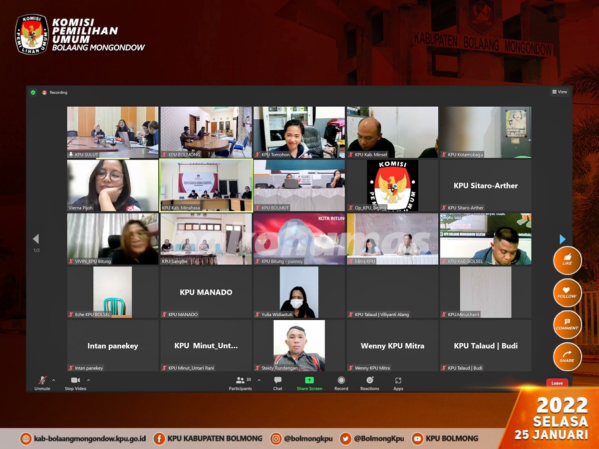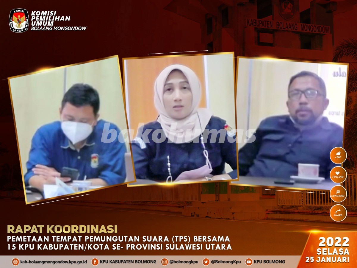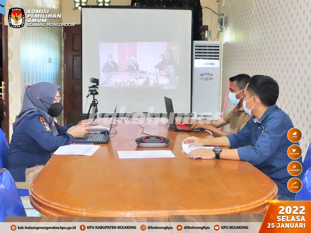 Lolak, Bolmong, kab-bolaangmongondow.kpu.go.id - Selasa (25/1) Ketua Divisi Perencanaan, Data dan Informasi KPU Kab. Bolaang Mongondow, Afif Zuhri bersama Kasubag Program dan Data, Ratuganesty Mokoginta serta Operator Sidalih, Lendi Mamonto mengikuti Rapat Koordinasi Pemetaan Tempat Pemungutan Suara (TPS) secara daring yang digelar KPU Provinsi Sulawesi Utara sesuai surat undangan Ketua KPU Provinsi Sulawesi Utara Nomor 31/TIK.04/71/2022 tanggal 24 Januari 2022.