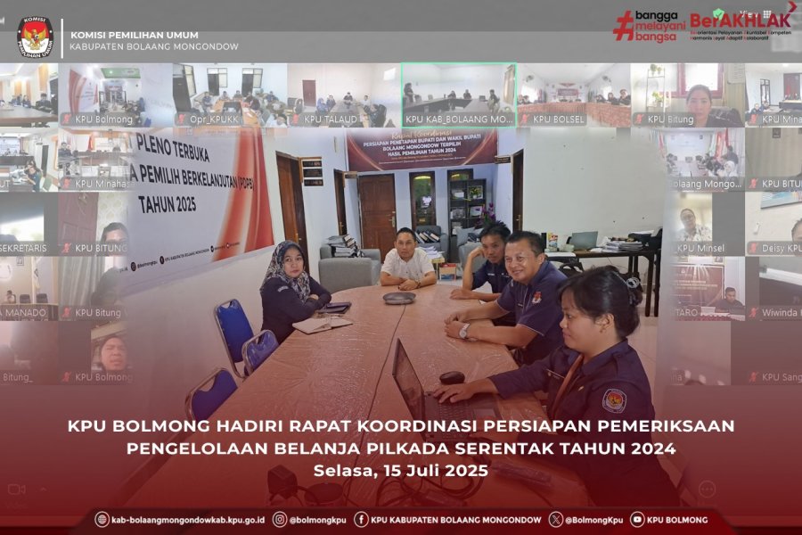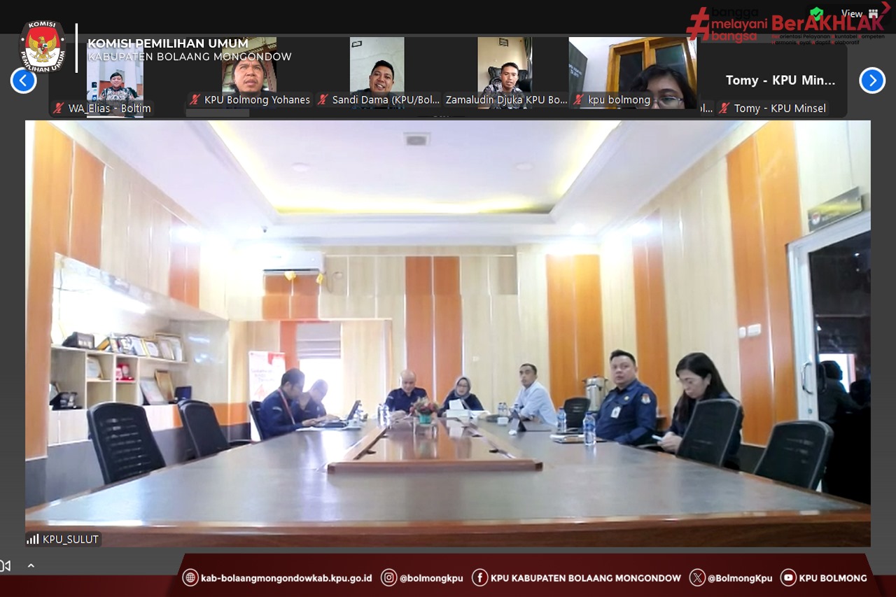 Lolak, kab-bolaangmongondow.kpu.go.id - KPU Kabupaten Bolaang Mongondow (Bolmong) kembali mengikuti Rapat Koordinasi Persiapan Pemeriksaan Pengelolaan Belanja Pilkada Serentak Tahun 2024, Penataan Sarpras Serta SDM, yang digelar KPU Provinsi Sulawesi Utara (Sulut) secara daring, Selasa (15/7/2025).
