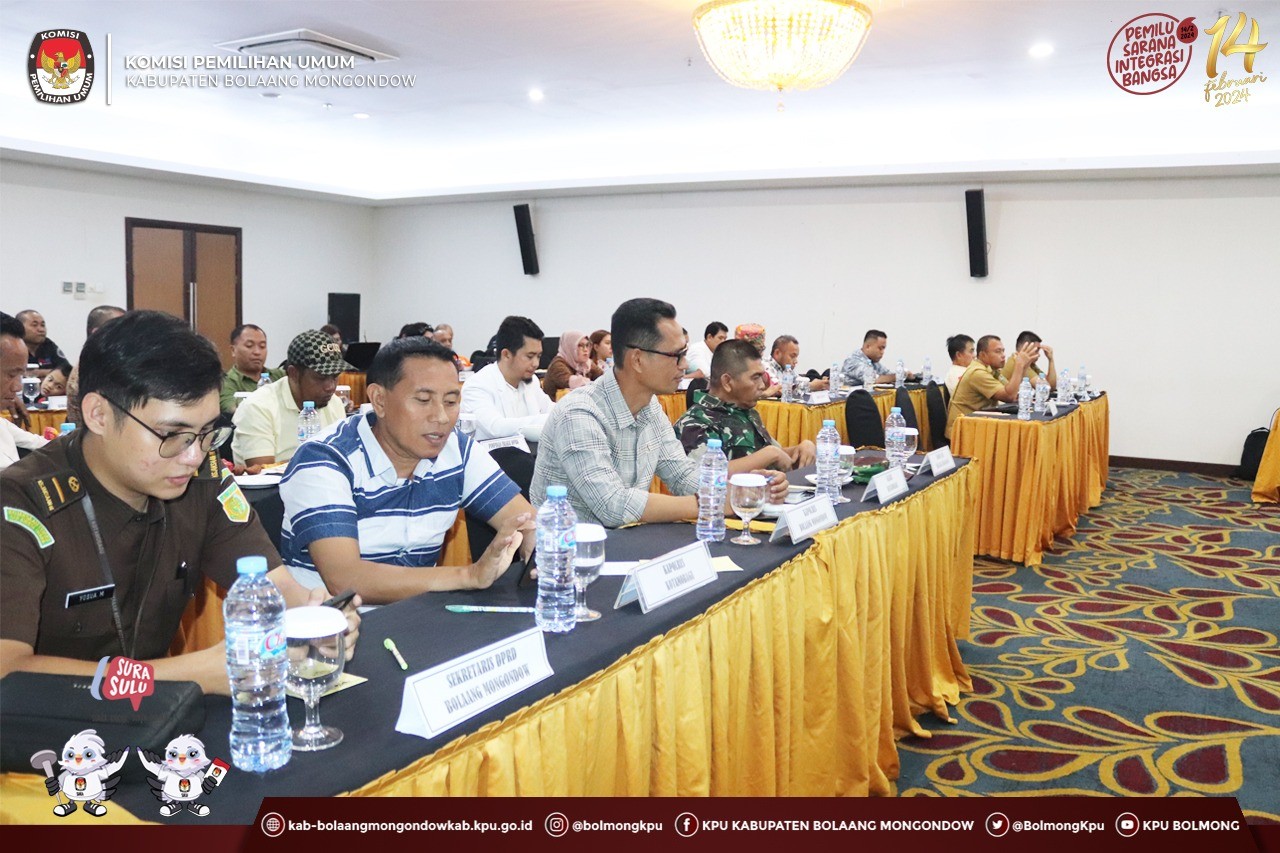 Sementara itu, mewakili Bupati Bolaang Mongondow, Asisten I Bidang Pemerintahan dan Kesra, Dekker Rompas menyampaikan bahwa proses demi proses yang telah dilalui dalam tahapan ini sampai dengan ditetapkannya dapil dan alokasi kursi anggota DPRD melalui Peraturan KPU Nomor 6 Tahun 2023 sudah dijalankan oleh KPU dengan sangat baik. Beliau juga menyampaikan apresiasi terhadap koordinasi dan komunikasi yang terus dibangun oleh KPU Bolmong kepada pihak Pemerintah Daerah dalam pelaksanaan tahapan-tahapan Pemilu tahun 2024.