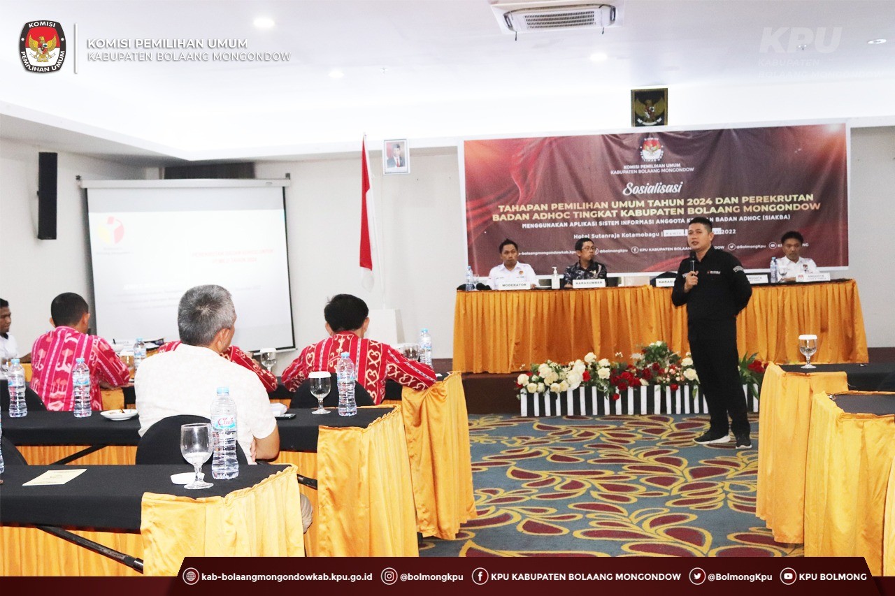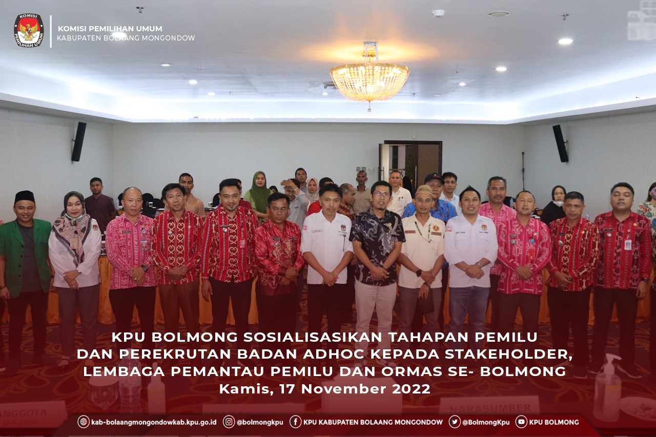 KPU BOLMONG SOSIALISASIKAN TAHAPAN PEMILU 2024 DAN PEREKRUTAN BADAN ADHOC KEPADA STAKEHOLDER, LEMBAGA PEMANTAU PEMILU DAN ORMAS SE- BOLMONG