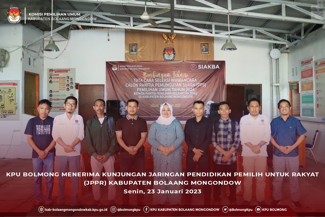 Lolak, kab-bolaangmongondow.kpu.go.id - Senin (23/1), KPU Kabupaten Bolaang Mongondow menerima kunjungan Jaringan Pendidikan Pemilih Untuk Rakyat (JPPR) Kabupaten Bolaang Mongondow.