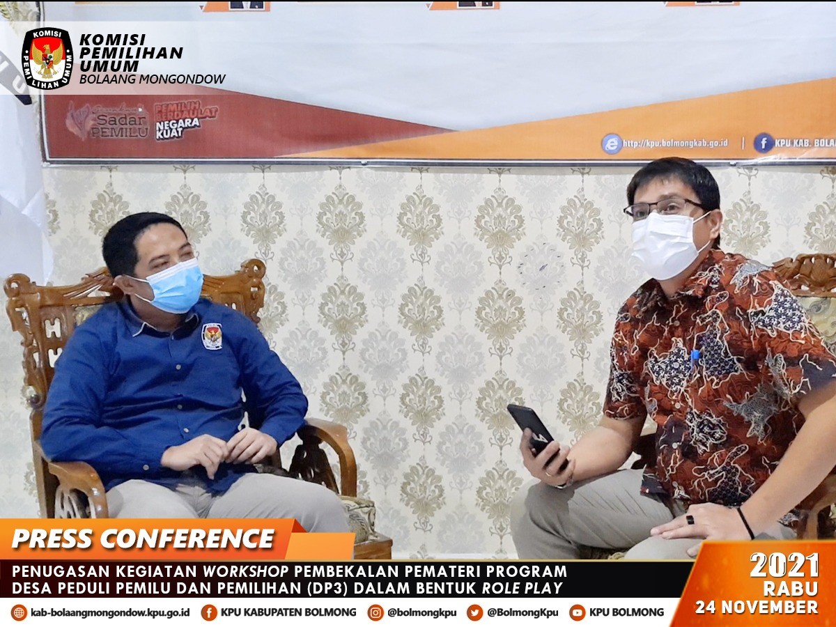 Sehubungan dengan hal tersebut, KPU Kabupaten Bolaang Mongondow telah menyusun naskah dan mendesain video dalam bentuk role play yang mengangkat tema “Pentingnya Peran Kaum Muda/Kaum Millenial dalam Pesta Demokrasi Pemilu dan Pemilihan”. Video ini berisikan dokumentasi kegiatan wawancara atau konferensi pers, dimana terdiri dari seorang pejabat publik/narasumber yang diperankan oleh Ketua Divisi Sosialisasi, Pendidikan Pemilih, Partisipasi Masyarakat dan SDM KPU Kabupaten Bolaang Mongondow, Hasrul Dumambow, dan seorang jurnalis yang diperankan oleh Kepala Sub Bagian Teknis Penyelenggaraan Pemilu, Partisipasi dan Hubungan Masyarakat Sekretariat KPU Kabupaten Bolaang Mongondow, Pierre A. Angkouw.