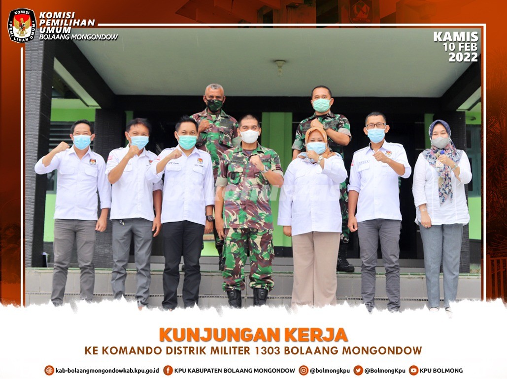 Seperti sebelumnya, kunjungan kerja kali ini juga dipimpin oleh Ketua KPU Kabupaten Bolaang Mongondow bersama Anggota KPU lainnya Alfian B. Pobela, Afif Zuhri, Ingga S. Adampe dan Hasrul Dumambow serta Kepala Sub Bagian Perencanaan, Data dan Informasi KPU Kabupaten Bolaang Mongondow, Ratuganesty Mokoginta dan disambut oleh Kepala Staf Kodim, Myr. Arh. Ahmad Janis didampingi Perwira Seksi Intelijen dan Perwira Seksi Operasi Kodim 1303 Bolaang Mongondow.