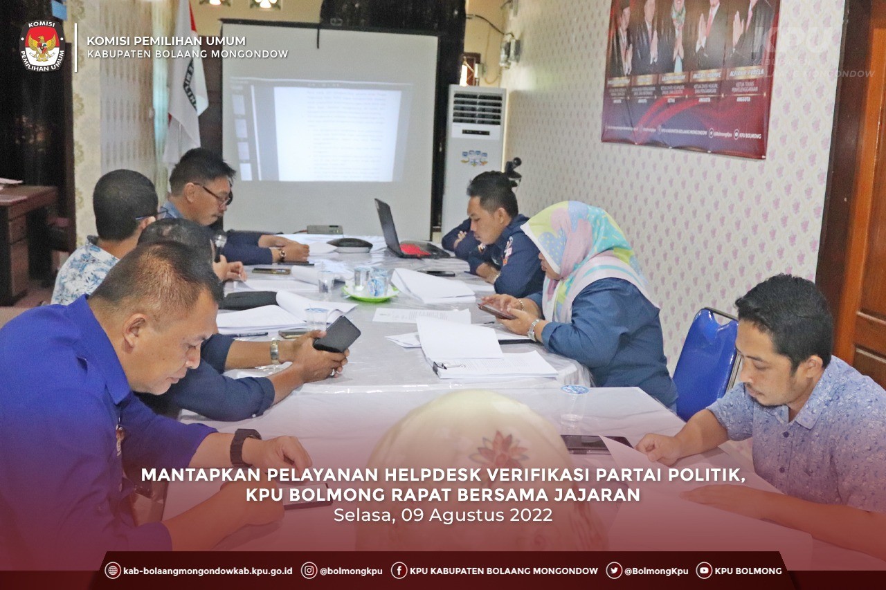 MANTAPKAN PELAYANAN HELPDESK VERIFIKASI PARPOL, KPU BOLMONG RAPAT BERSAMA JAJARAN